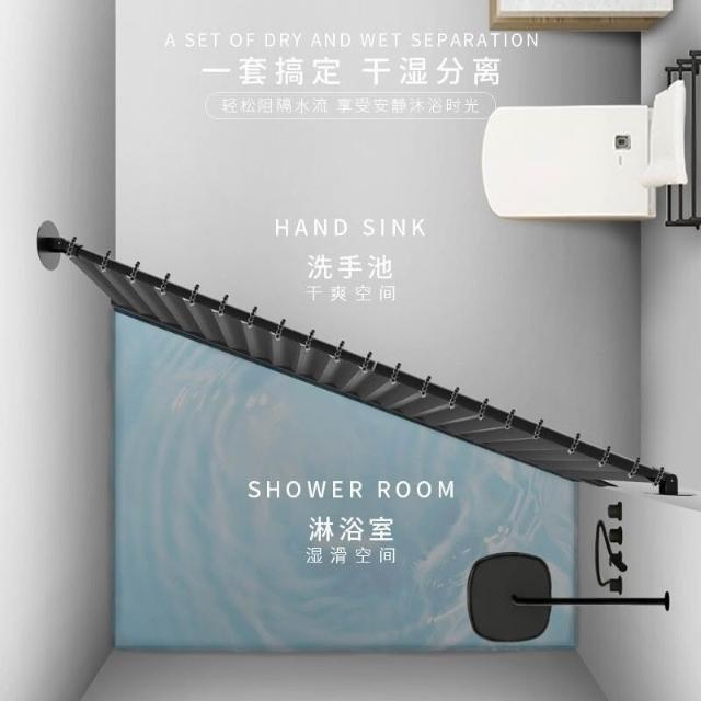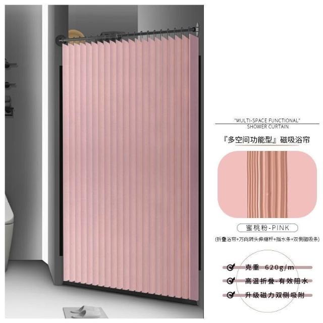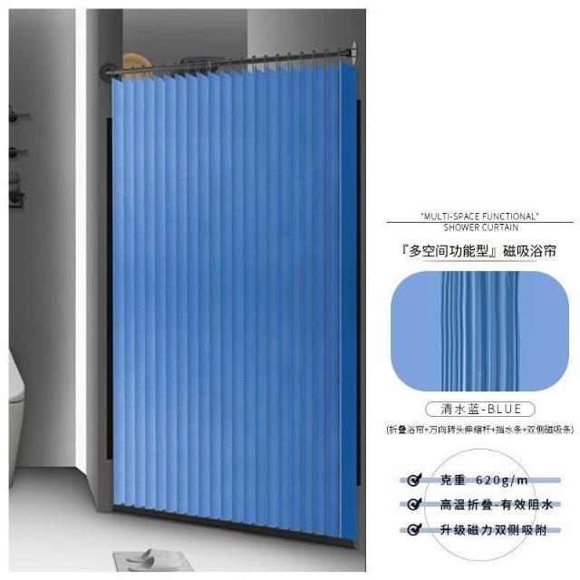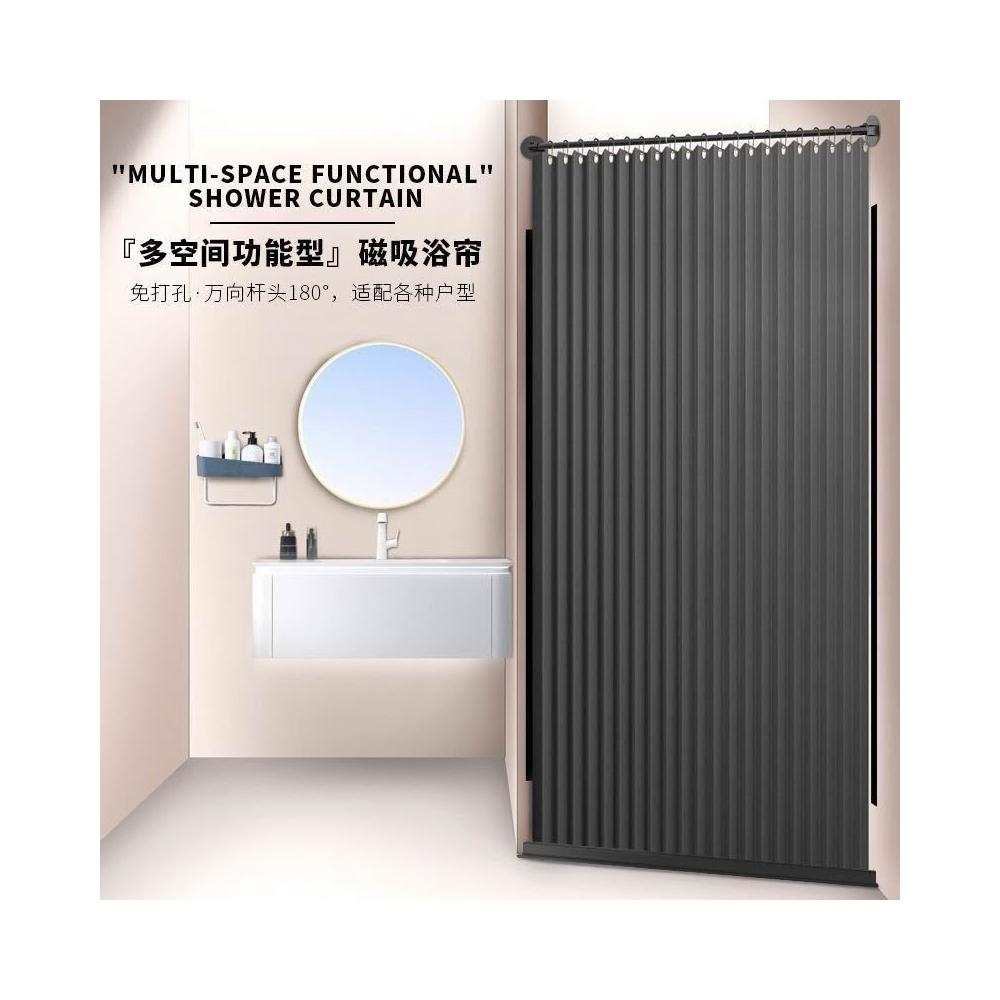 多空間磁吸型浴室折疊簾免打孔伸縮桿防水防黴衛生間隔斷簾可定製