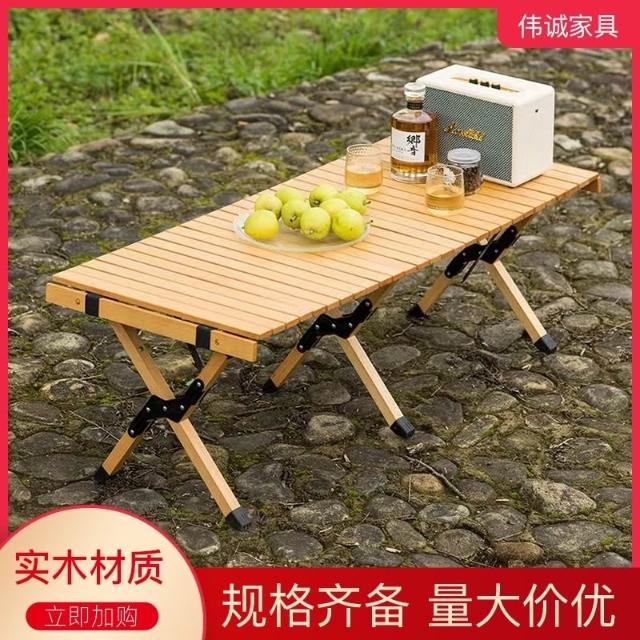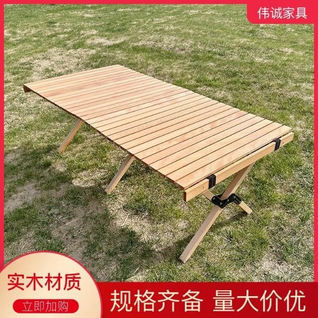 餐桌 戶外擺攤桌 折疊桌 戶外櫸木蛋捲桌精緻露營野餐燒烤野營大號便攜折疊桌子廠傢貨源