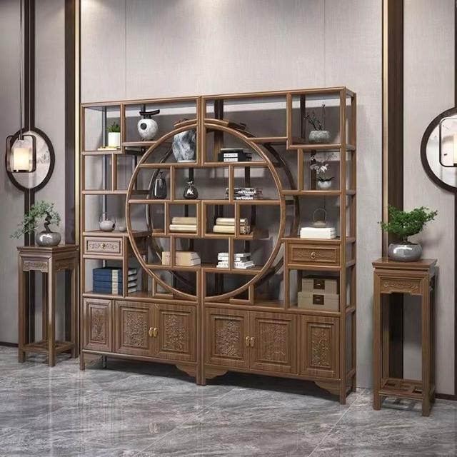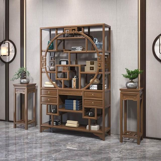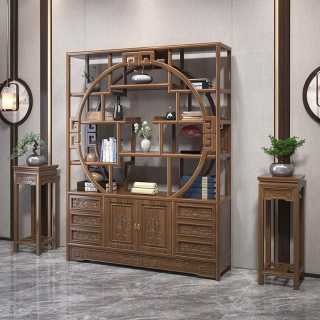 博古架 展示架 置物架 實木置物架中式多寶閣茶葉仿古架展示櫃仿古客廳簡約半圓博古架
