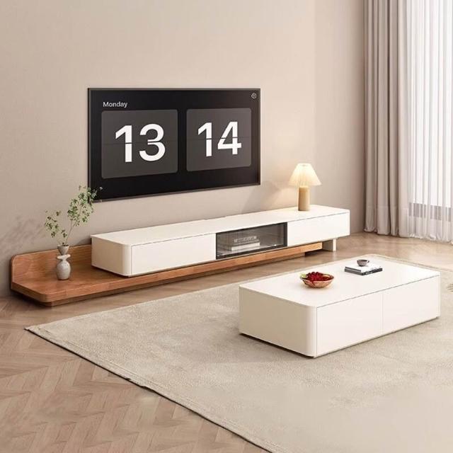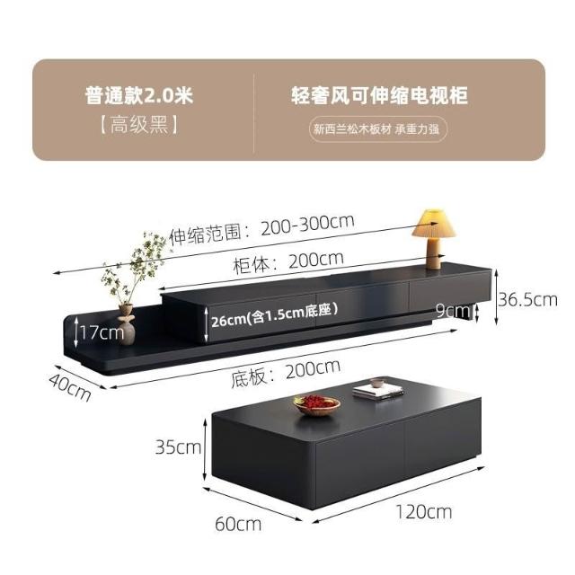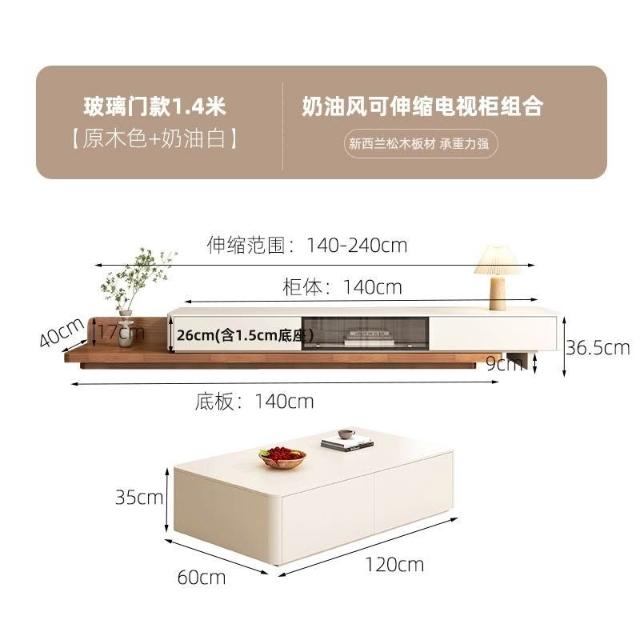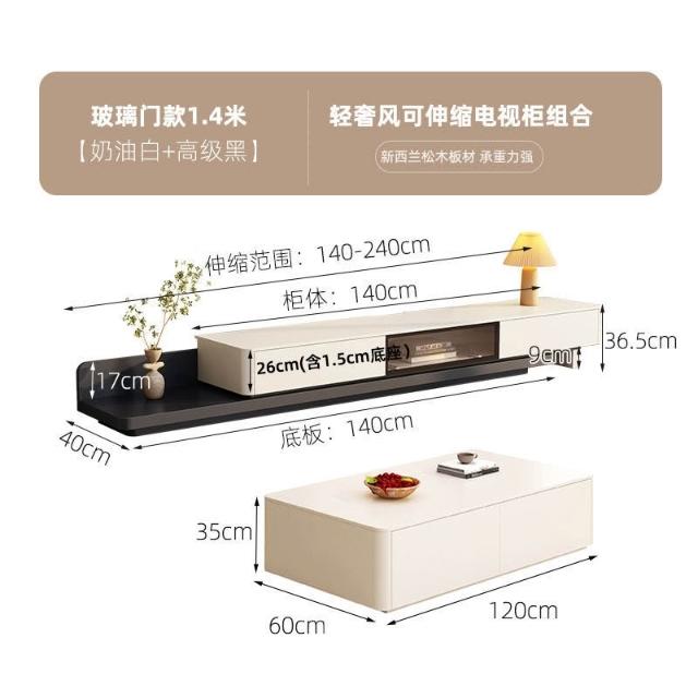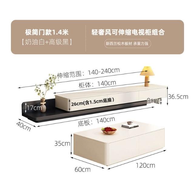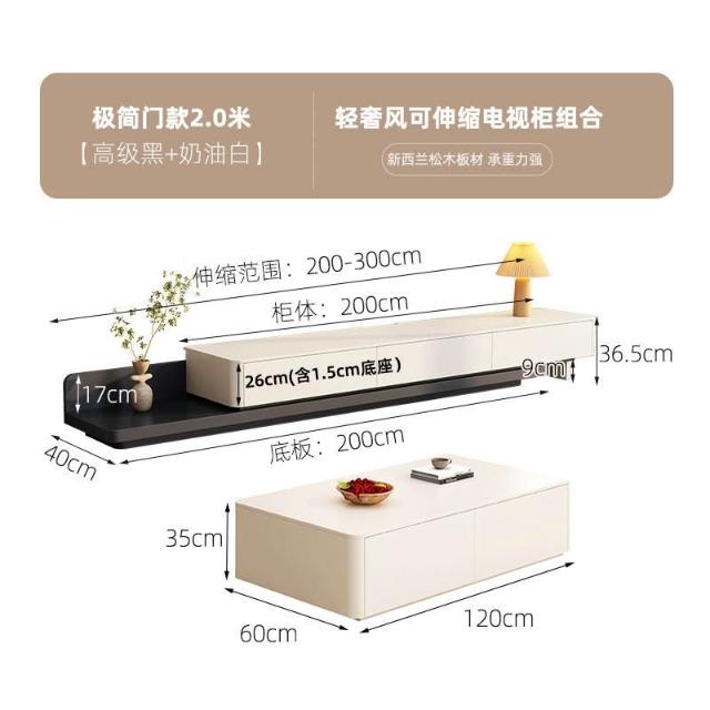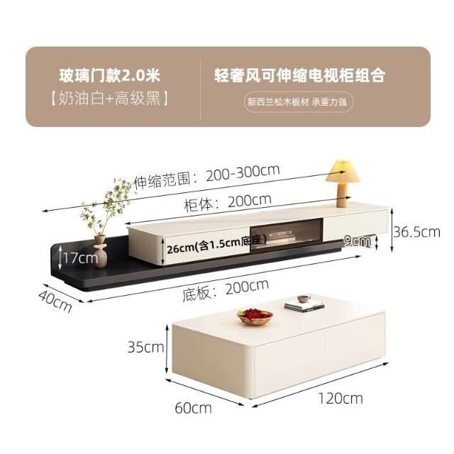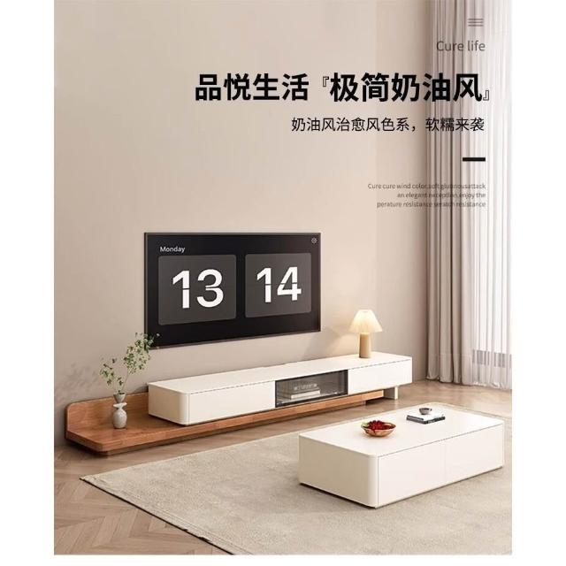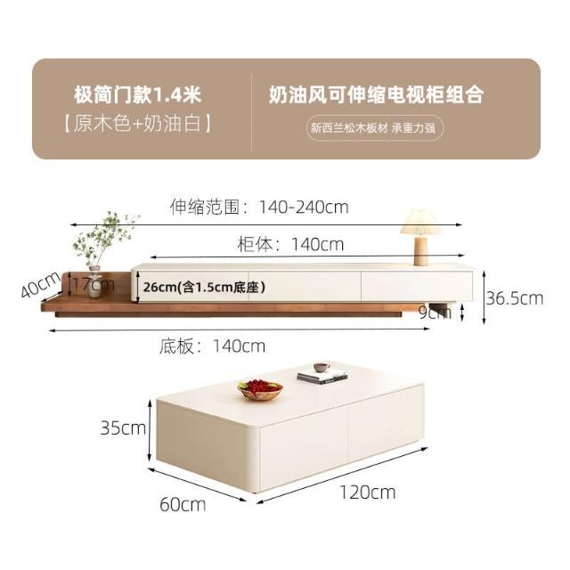 電視櫃客廳現代茶幾組閤套裝小戶型地櫃原木超窄電視櫃可伸縮拉伸