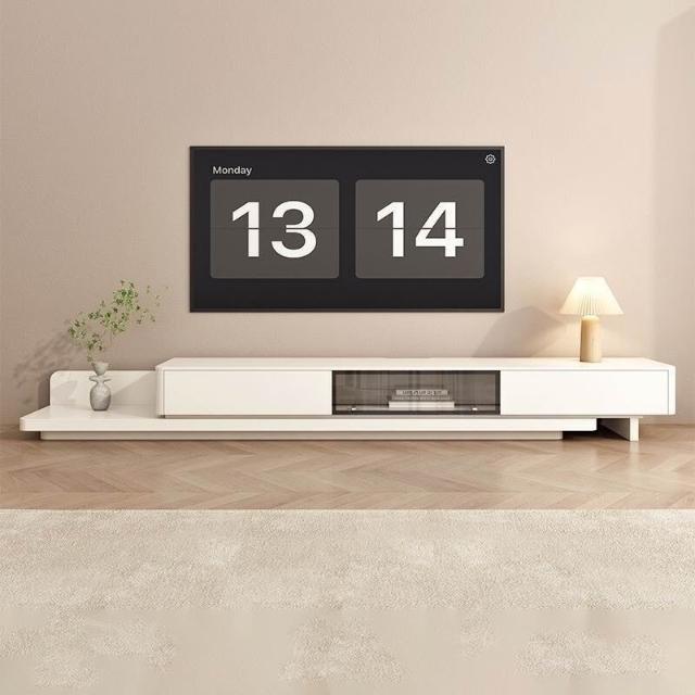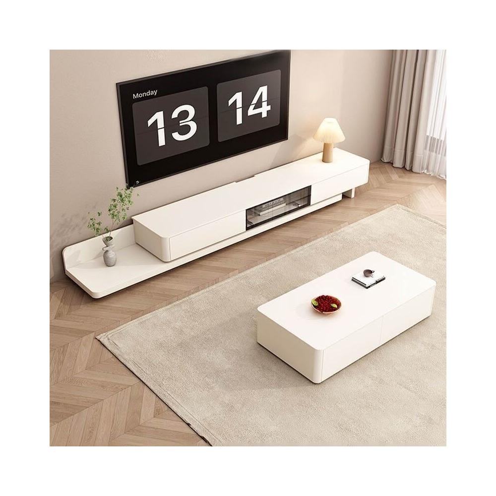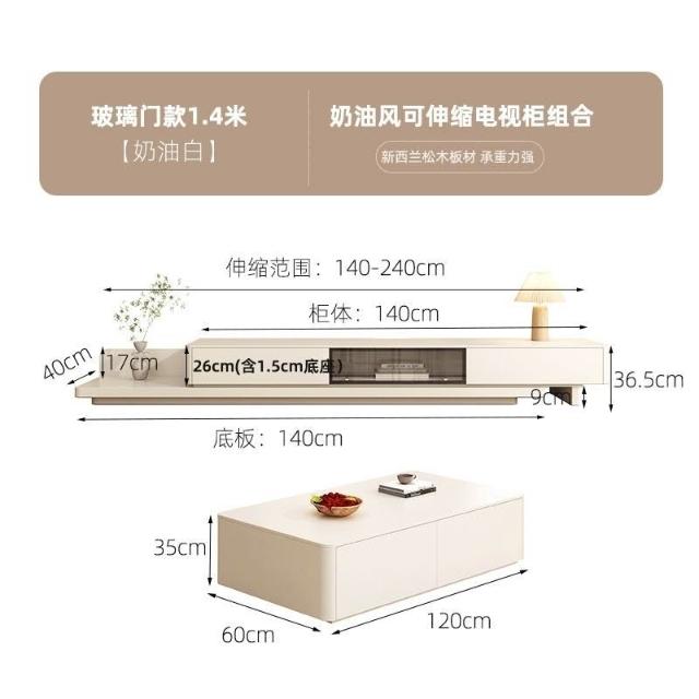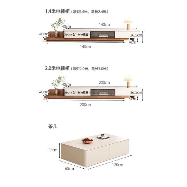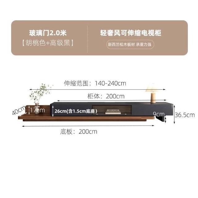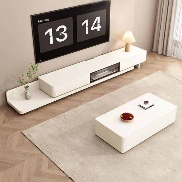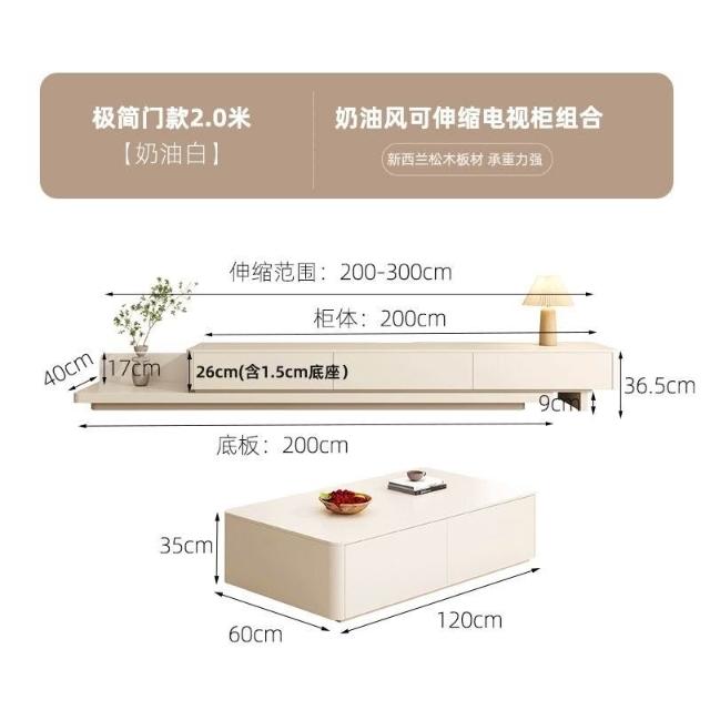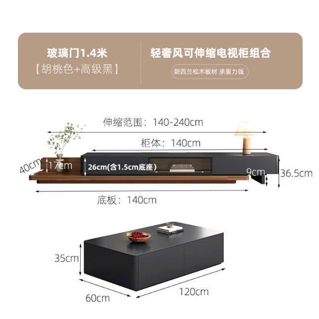 電視櫃客廳現代茶幾組閤套裝小戶型地櫃原木超窄電視櫃可伸縮拉伸
