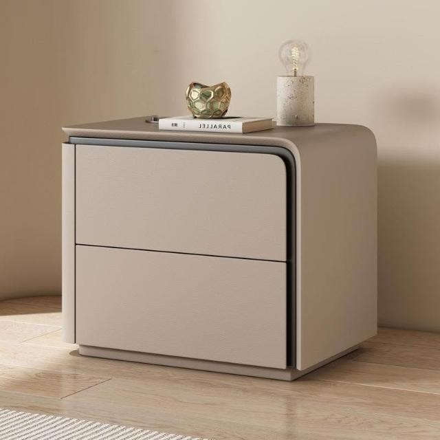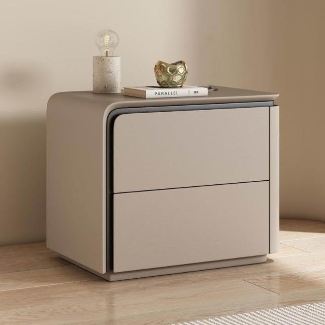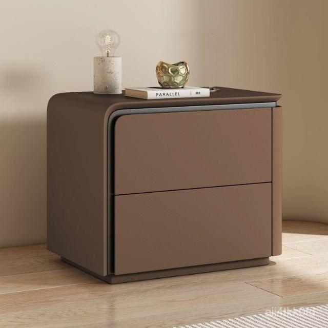//輕奢床頭櫃實木皮質床頭櫃極簡意式高級新款整裝儲物收納櫃Z-27