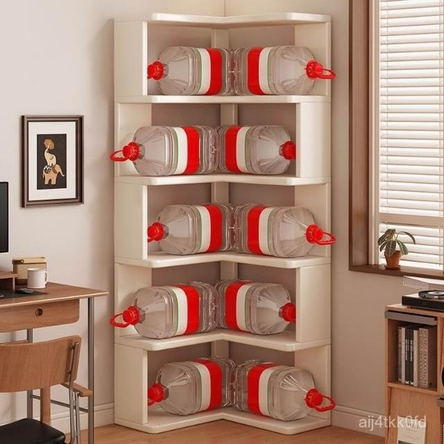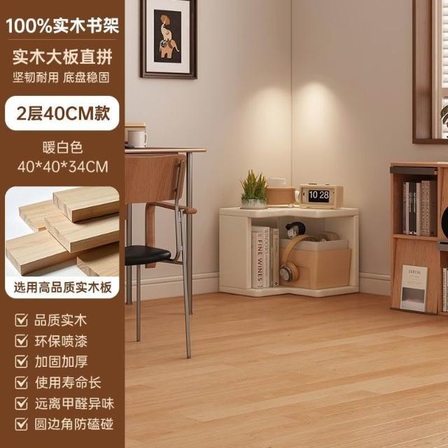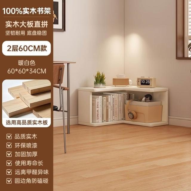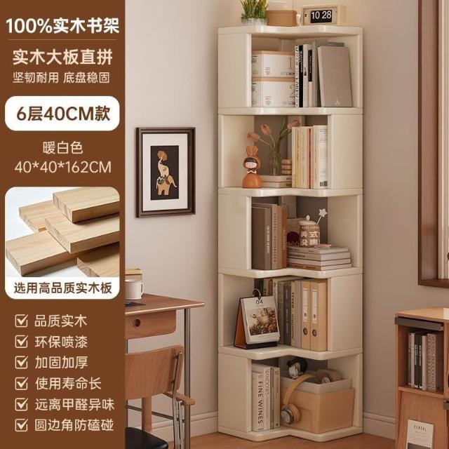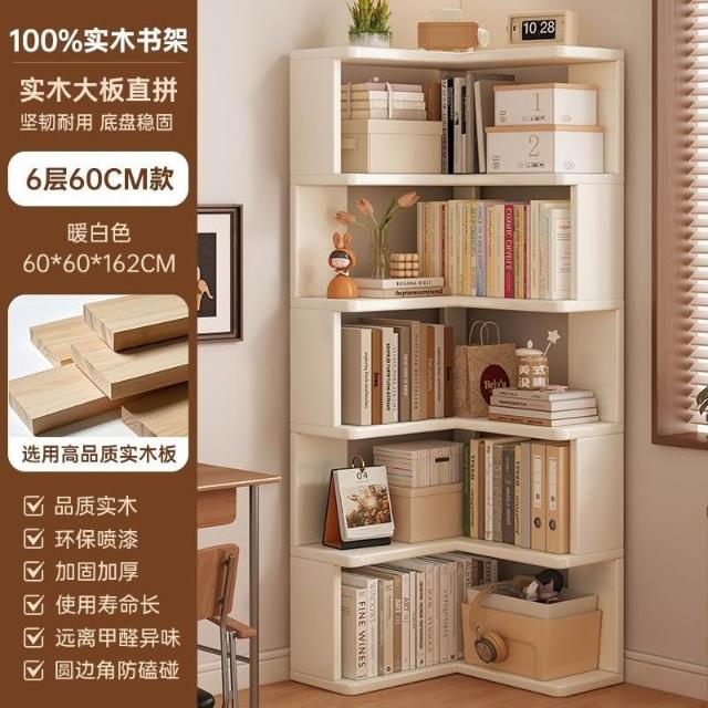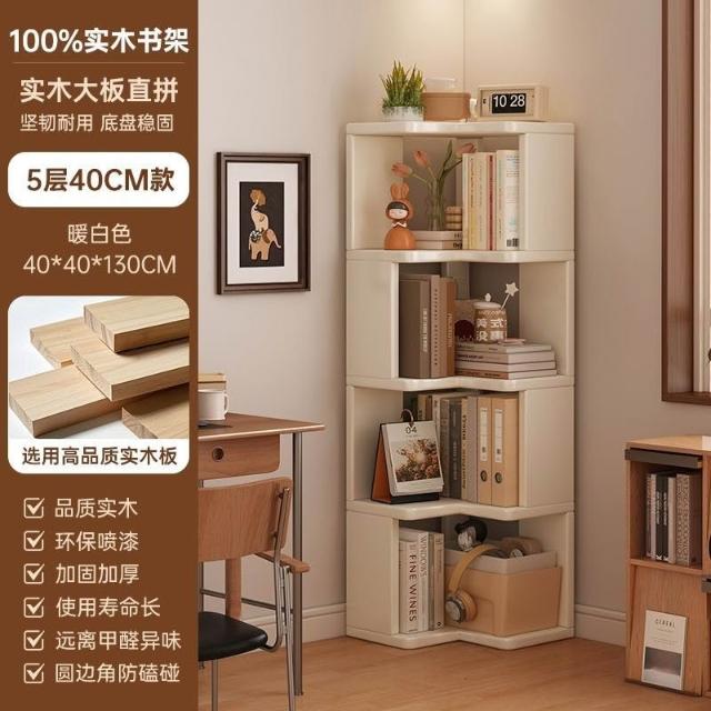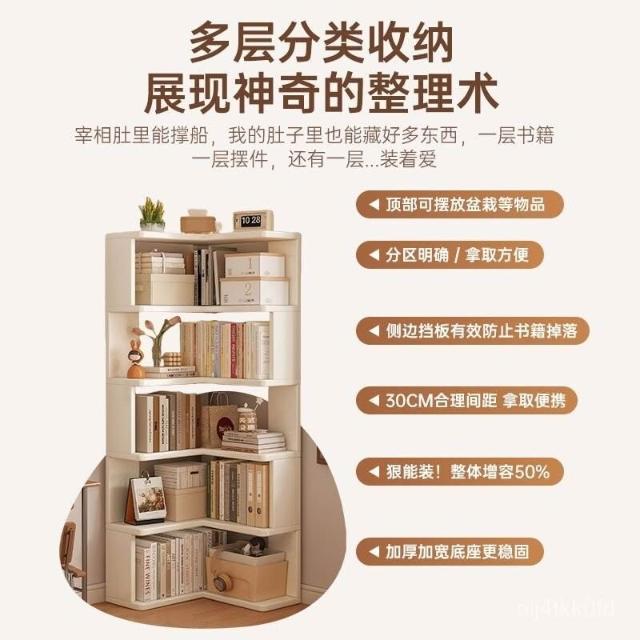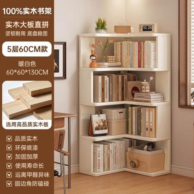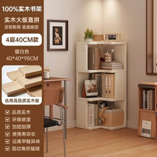 //奶油風實木書架 落地置物架 拐角書櫃 三角書本收納架子 角櫃 轉角櫃 層架