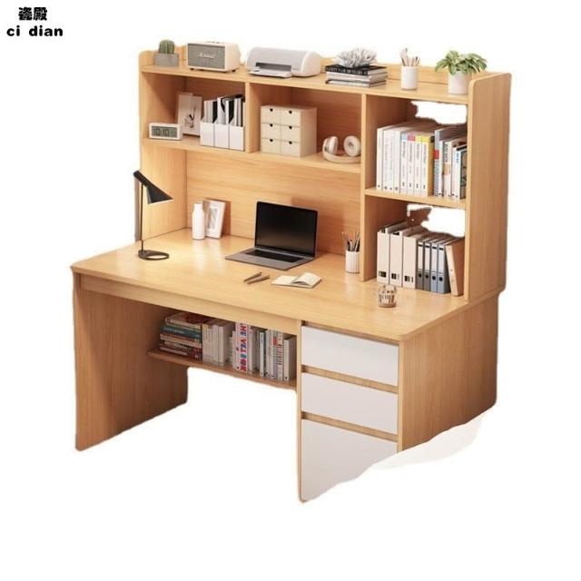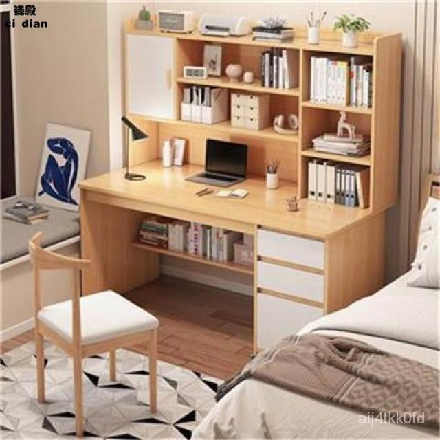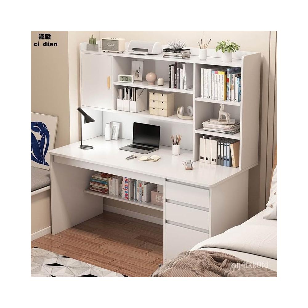 臥室書桌書架一體學生傢用簡約現代電腦桌臺式寫字學習桌子帶書櫃