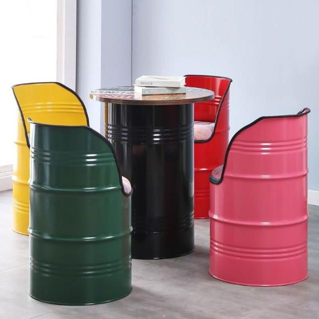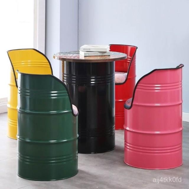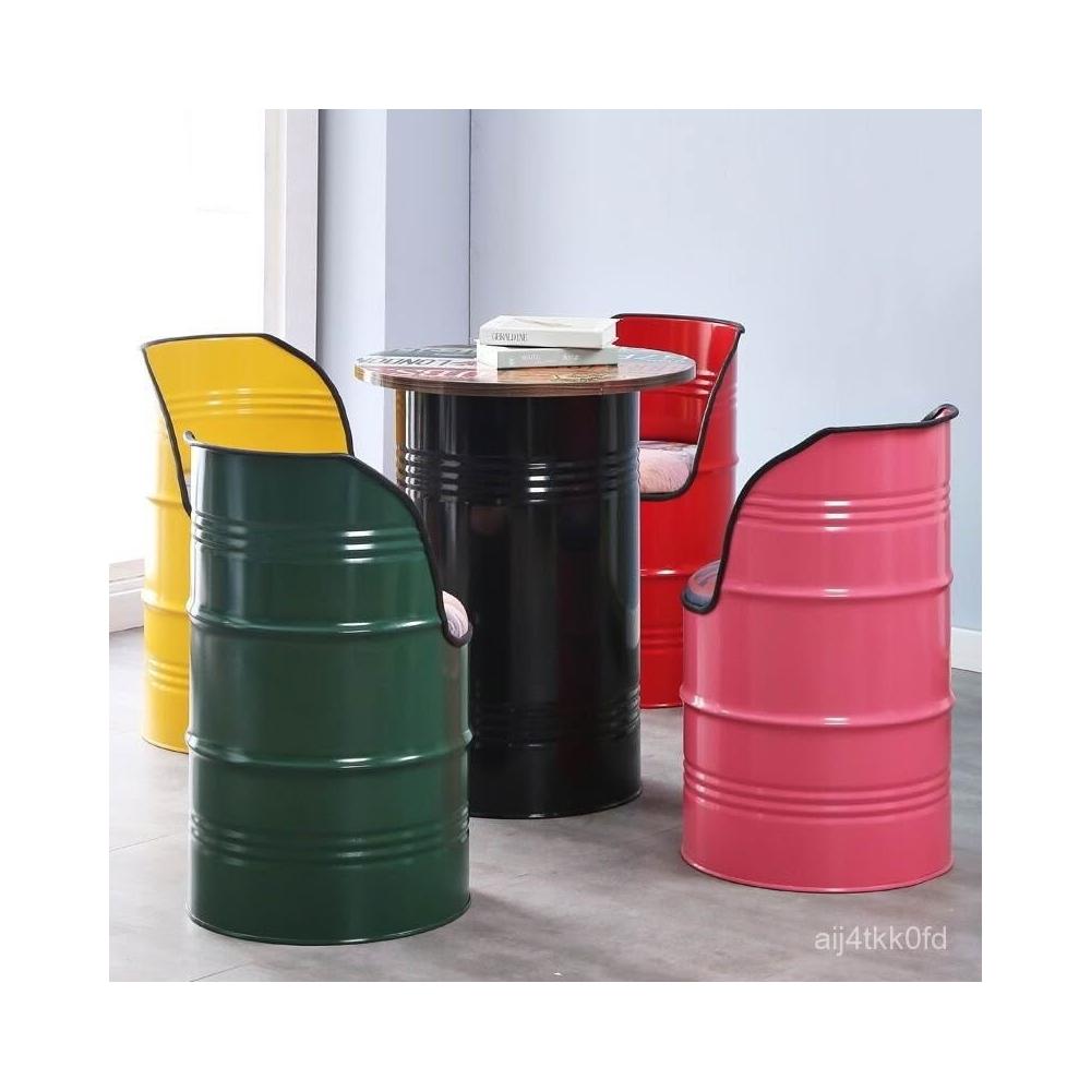 +定制油漆桶凳 鐵桶 油漆桶凳 圓桶凳 鐵桶凳 鐵藝工業風矮凳 油桶靠背桶桌椅餐廳餐椅時尚收納凳子復古儲物鐵桶椅子美式風