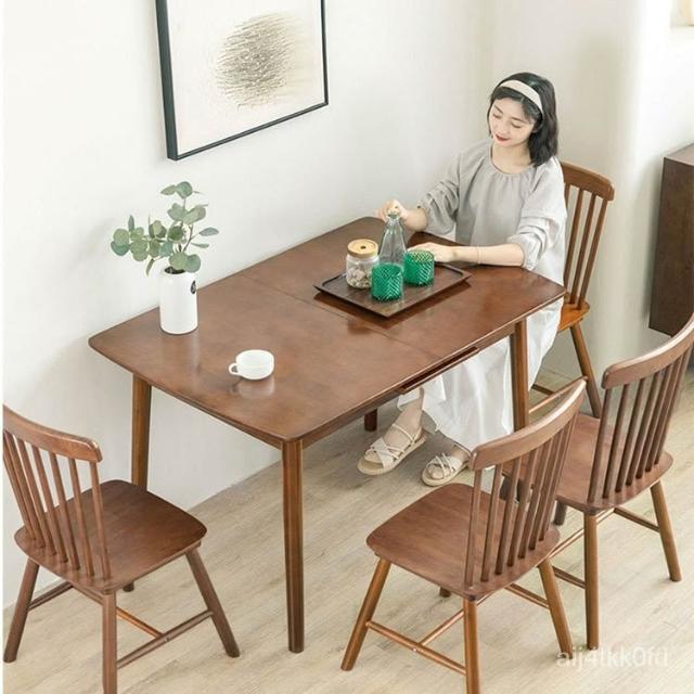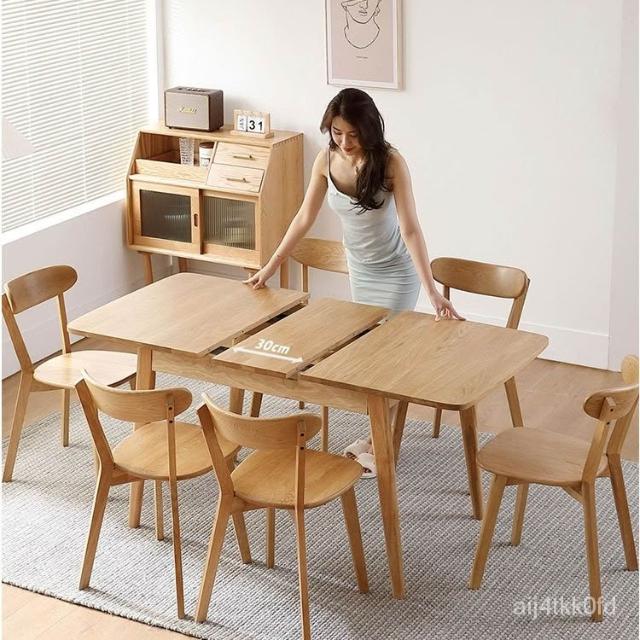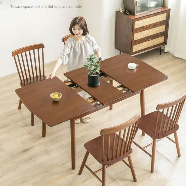 工廠直銷 實木伸縮折疊餐桌 傢用小戶型可拉伸長方形餐桌 現代簡約折疊喫飯桌 實木餐桌 餐桌椅組合