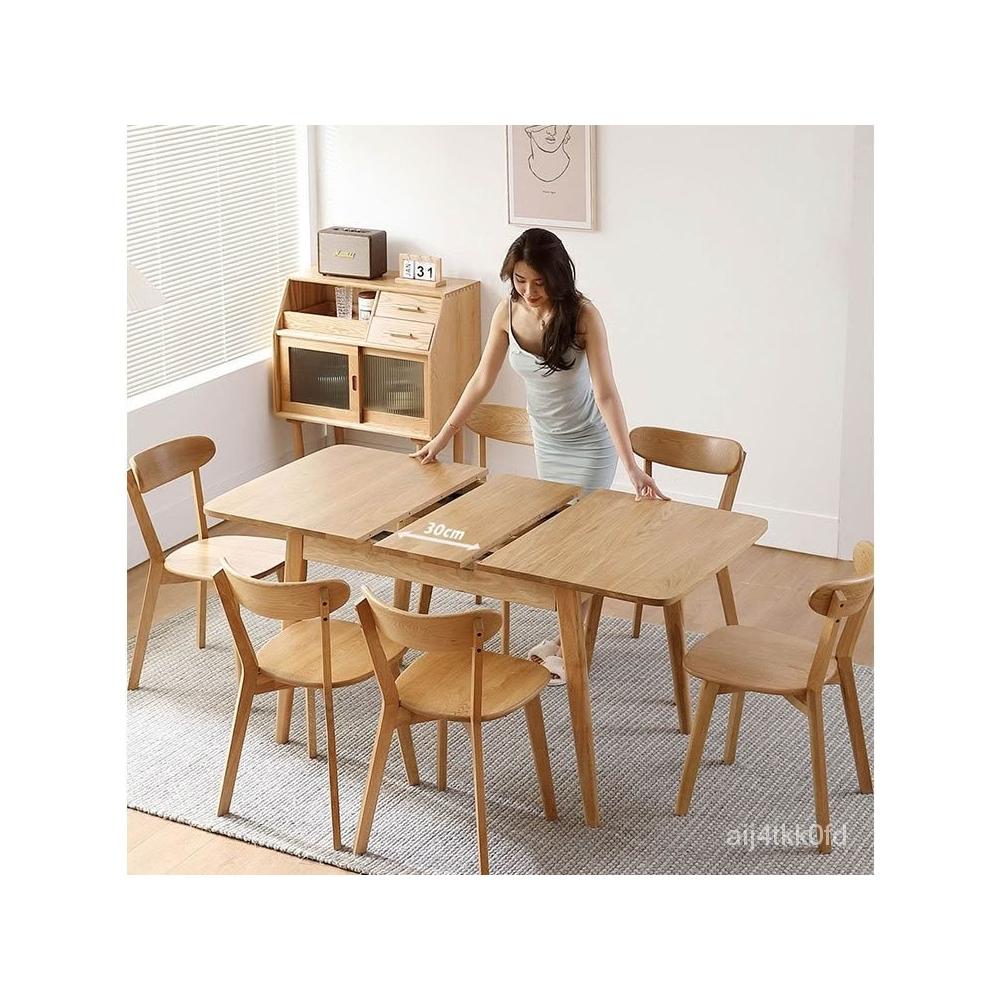 工廠直銷 實木伸縮折疊餐桌 傢用小戶型可拉伸長方形餐桌 現代簡約折疊喫飯桌 實木餐桌 餐桌椅組合