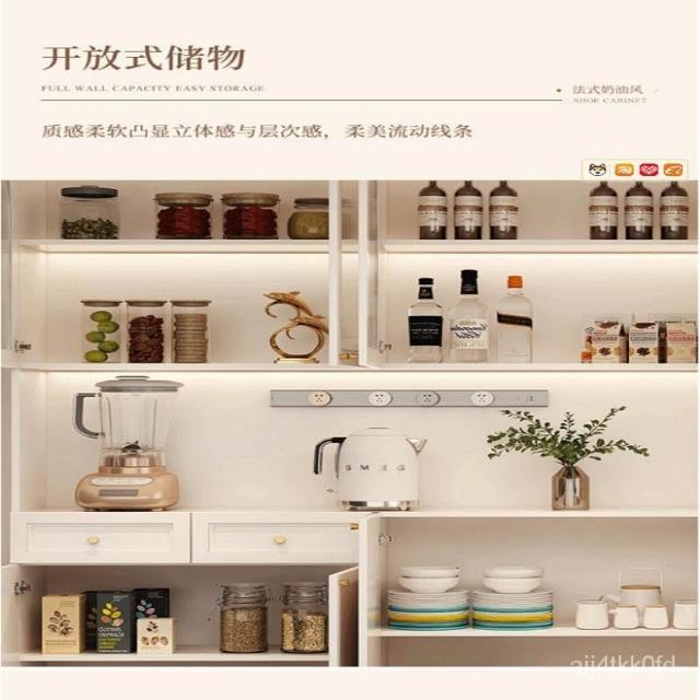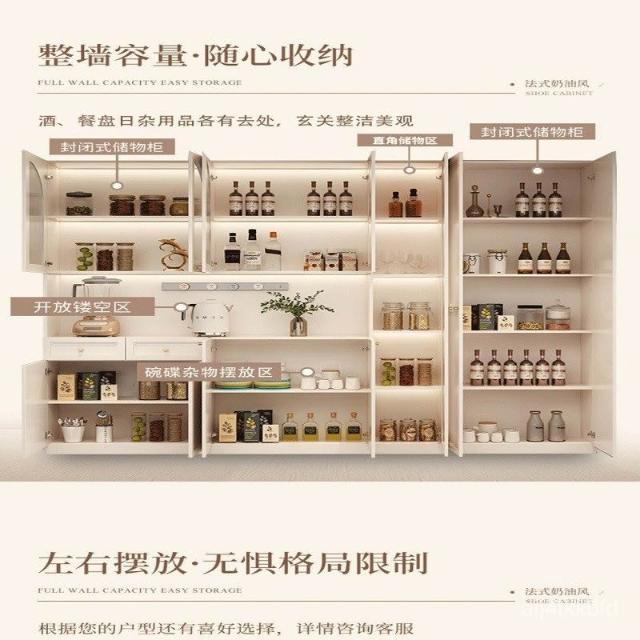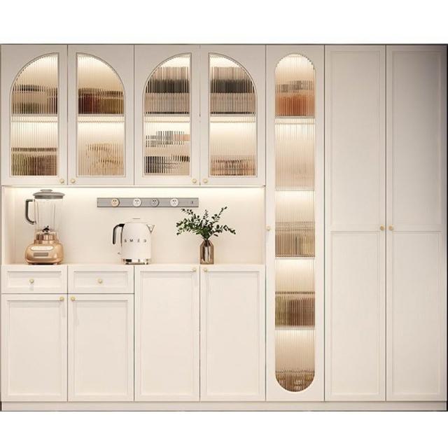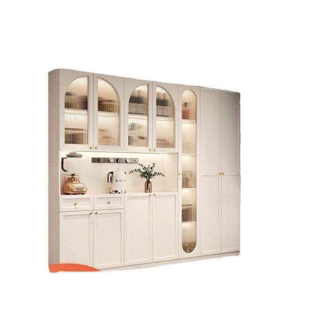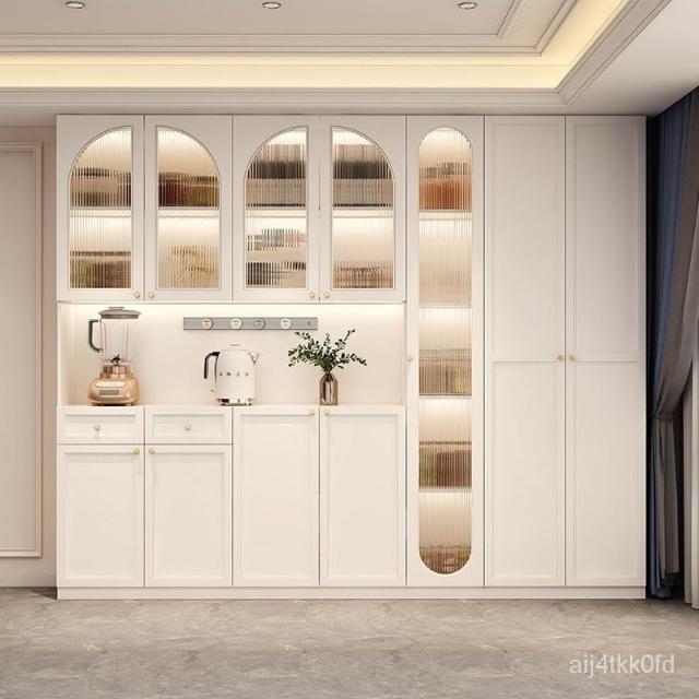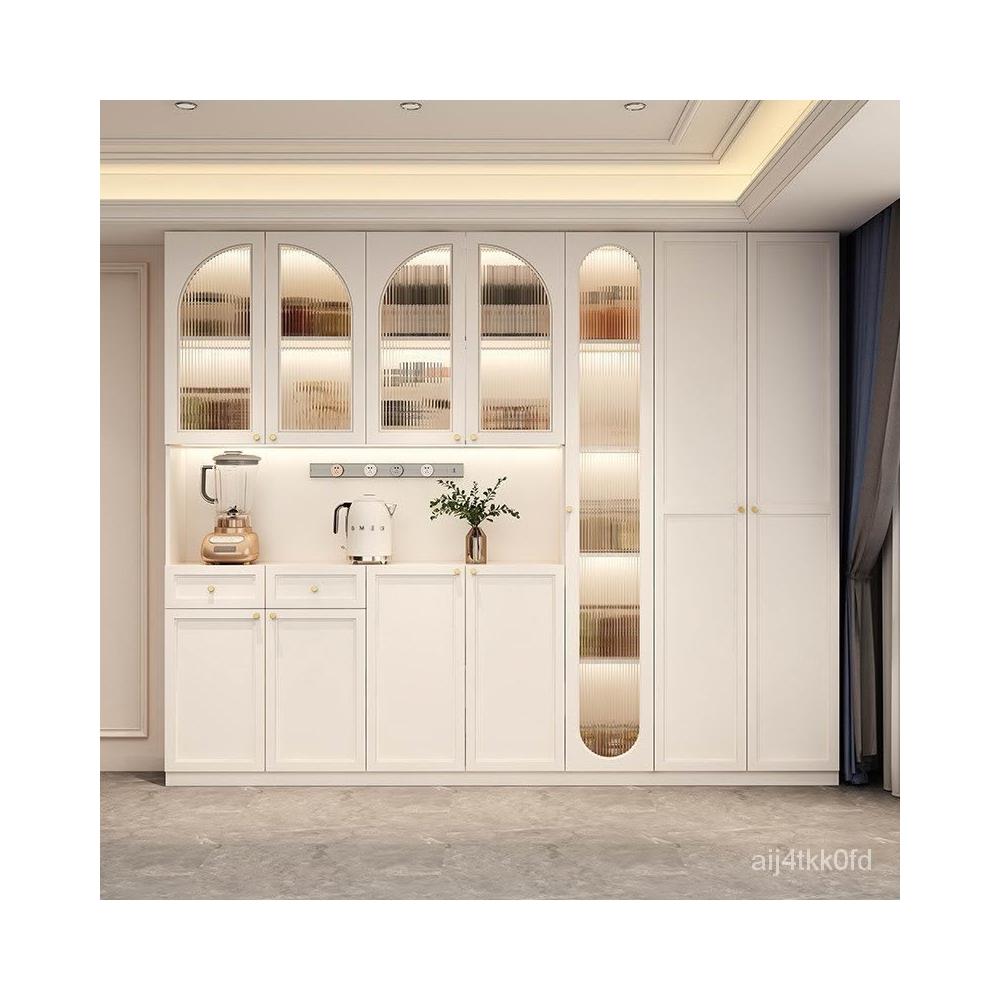 免運 一體靠墻超薄餐邊櫃 高櫃傢用極窄酒櫃 客廳儲物櫃 法式奶油風玻璃茶水櫃 玄關櫃 門廳櫃 儲物櫃 置物櫃