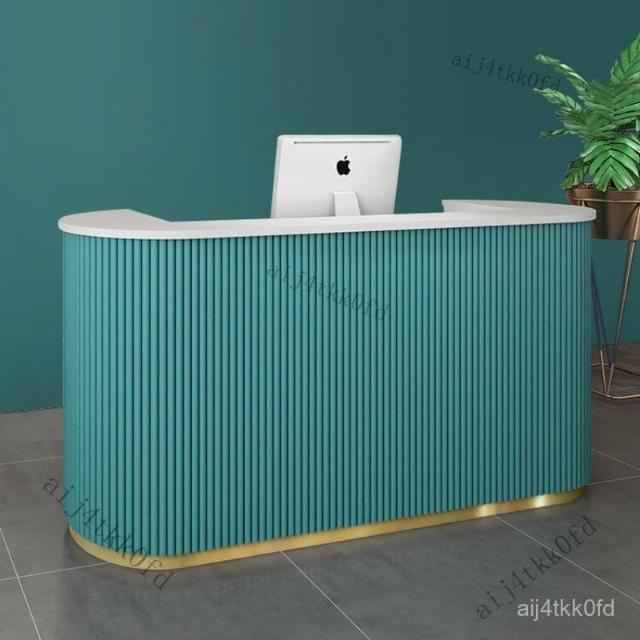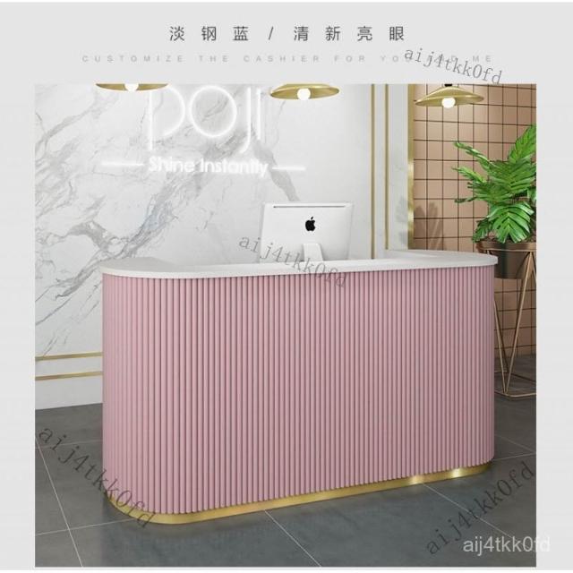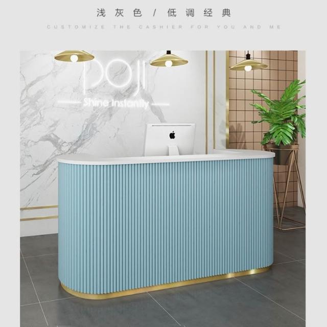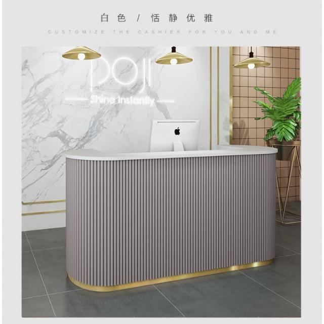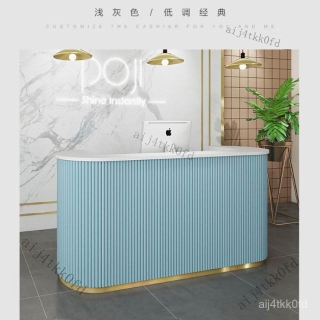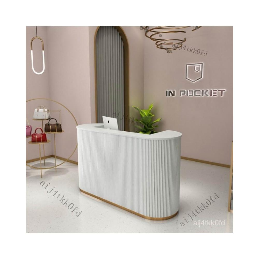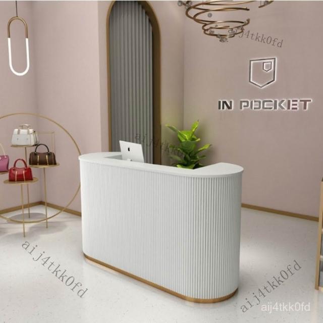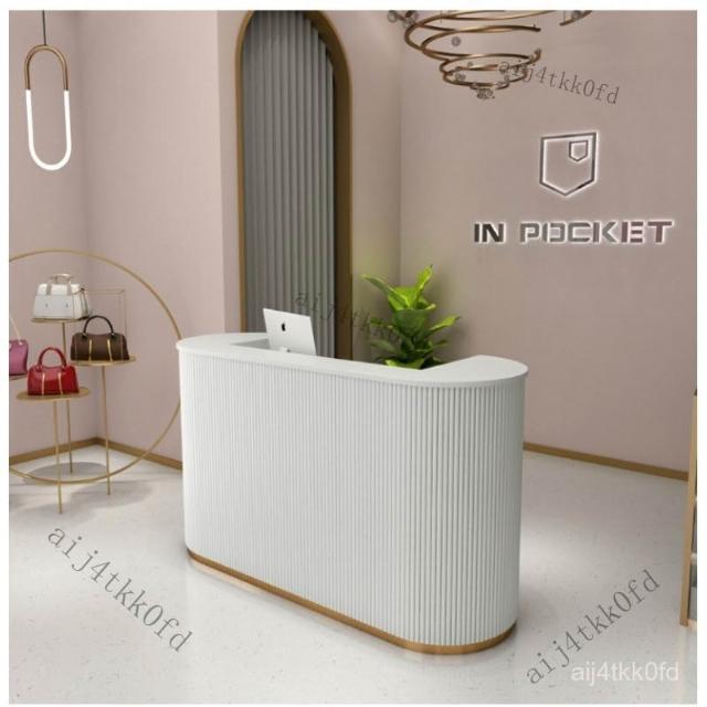 //現代簡約服裝店弧形收銀臺美容院吧臺北歐輕奢前臺工作室接待櫃臺