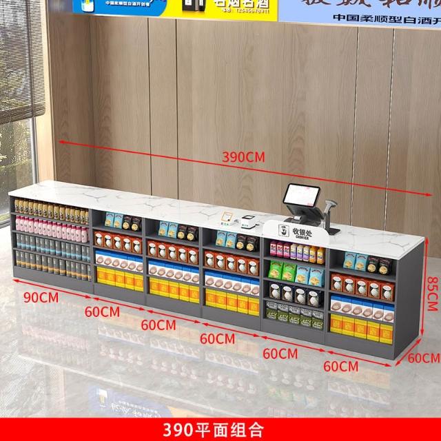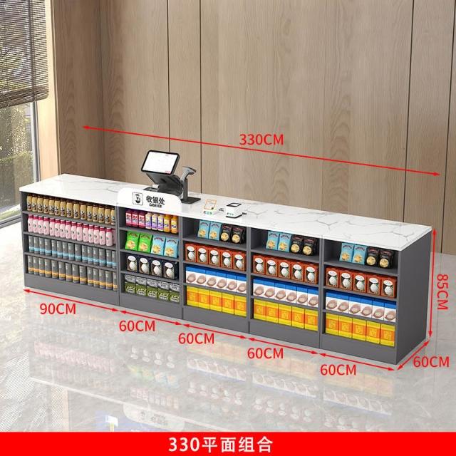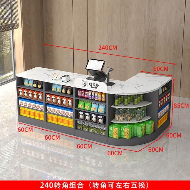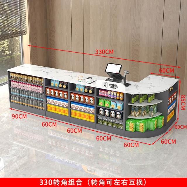 //便利店超市巖闆收銀櫃臺簡約現代母嬰店轉角吧臺煙酒櫃組閤展示櫃