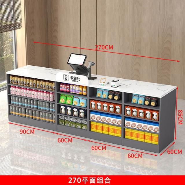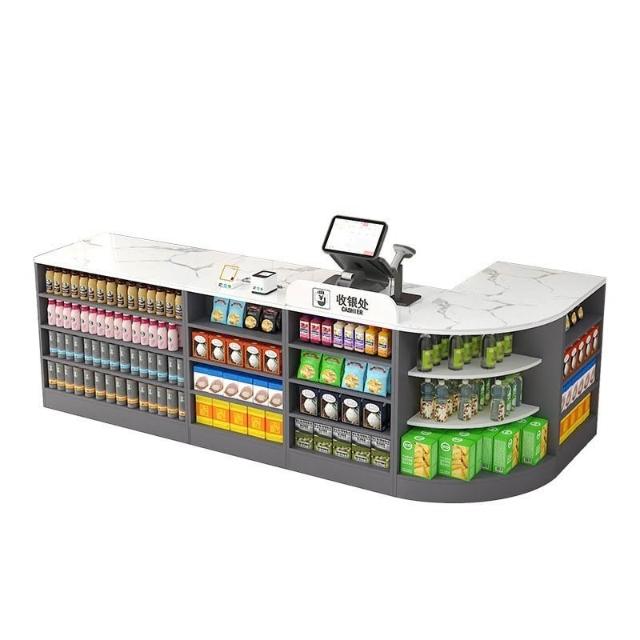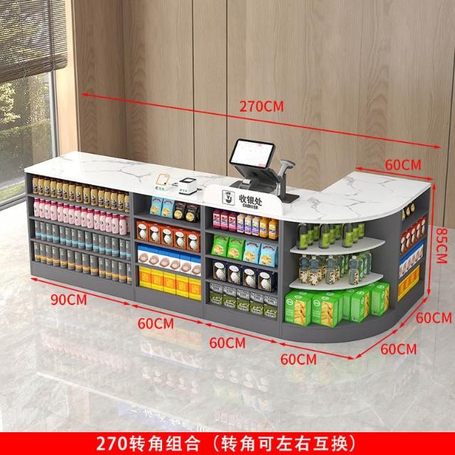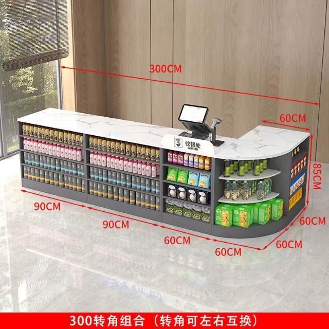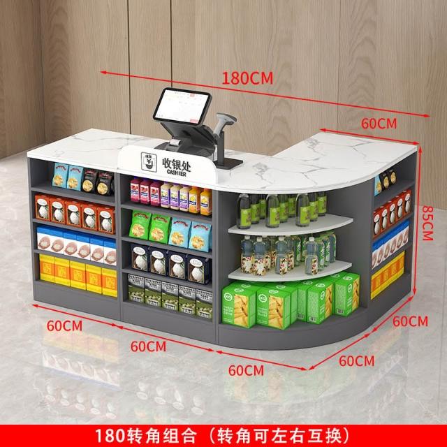 //便利店超市巖闆收銀櫃臺簡約現代母嬰店轉角吧臺煙酒櫃組閤展示櫃
