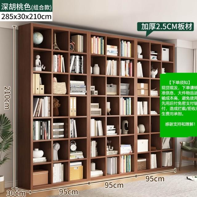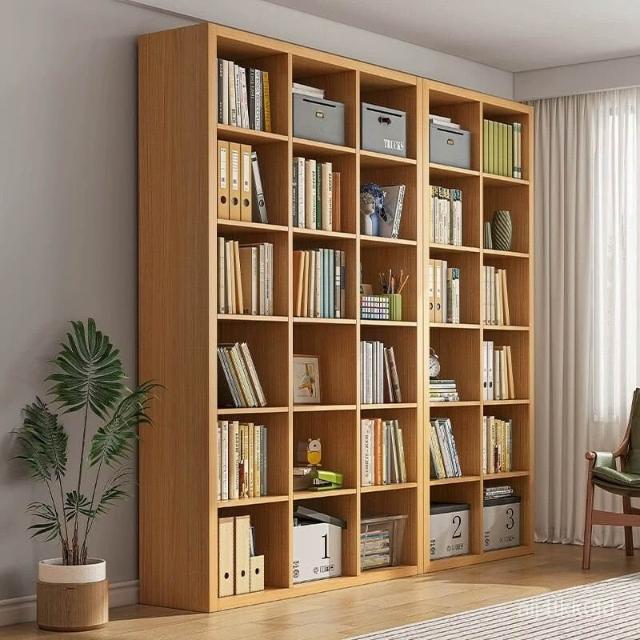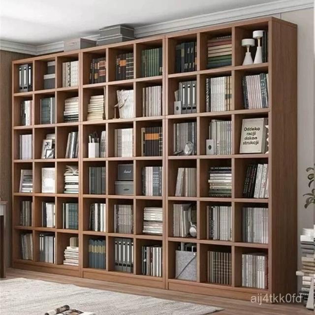 //多層格子櫃家用靠墻落地收納書架組閤簡約現代圖書館書本置物架櫃