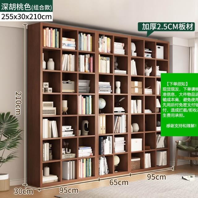 //多層格子櫃家用靠墻落地收納書架組閤簡約現代圖書館書本置物架櫃