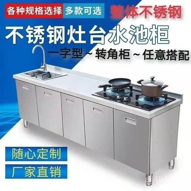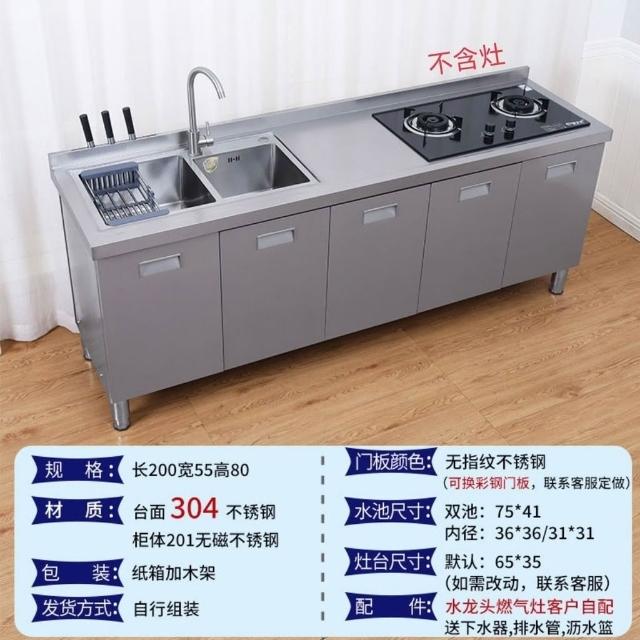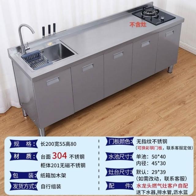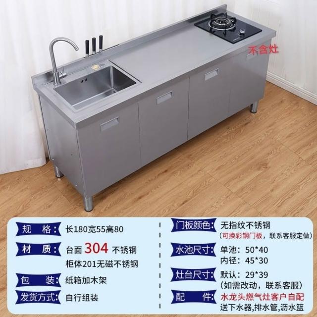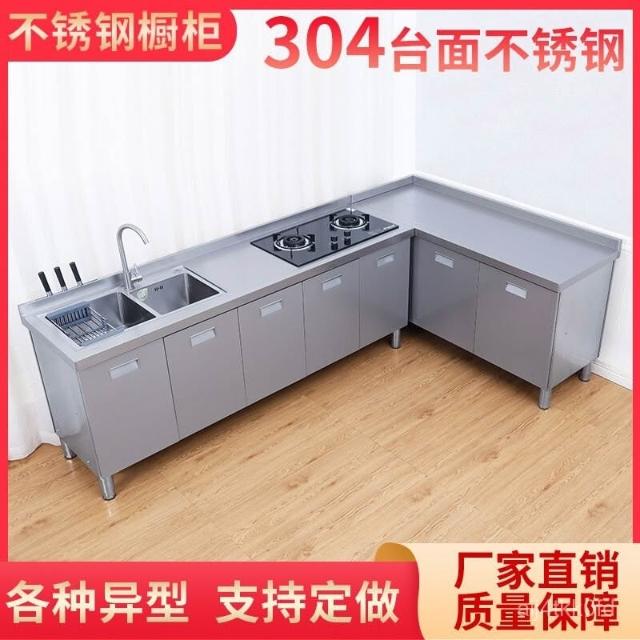 /不銹鋼304臺麵工作臺竈臺操作儲物水池水槽一體櫥櫃家用廚房櫥櫃