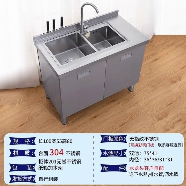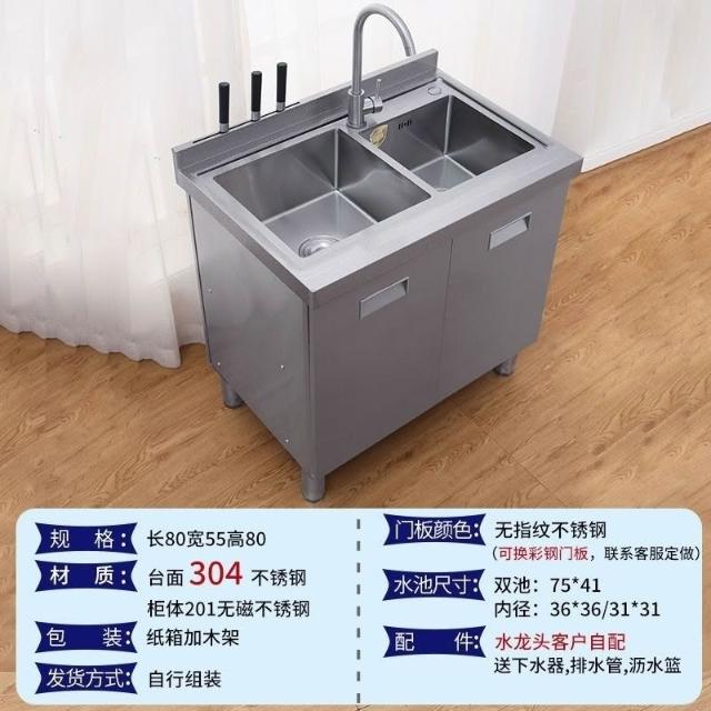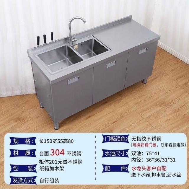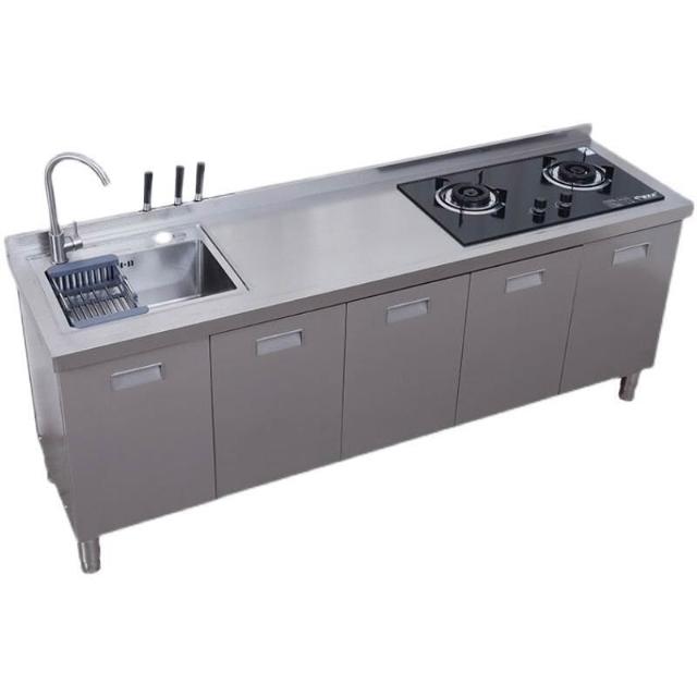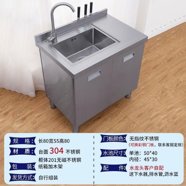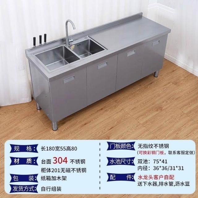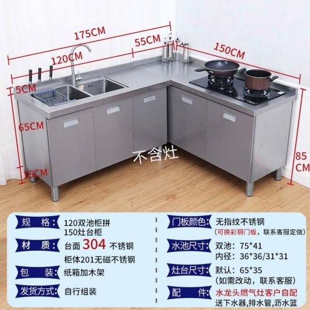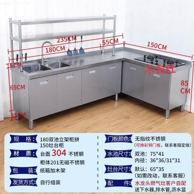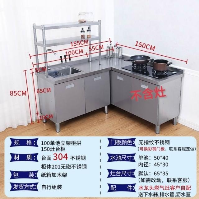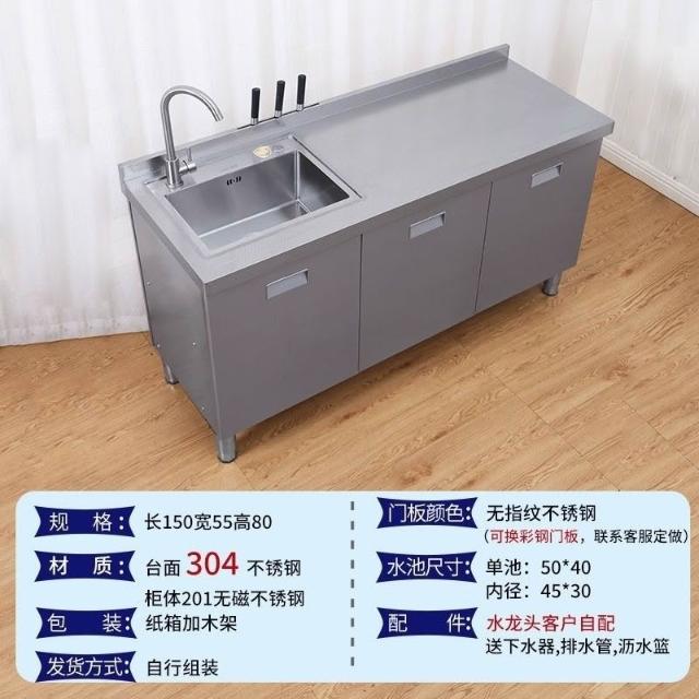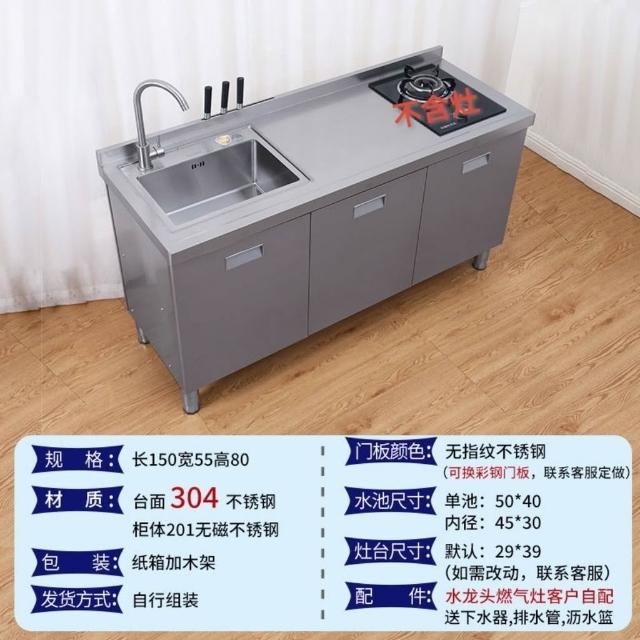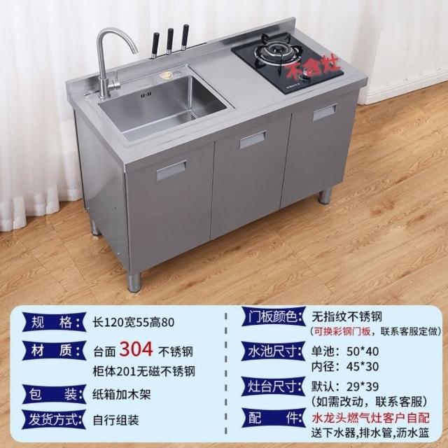 /不銹鋼304臺麵工作臺竈臺操作儲物水池水槽一體櫥櫃家用廚房櫥櫃