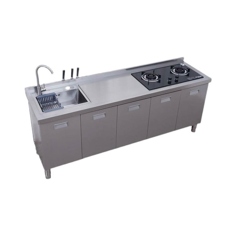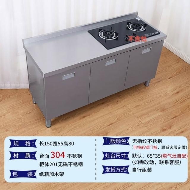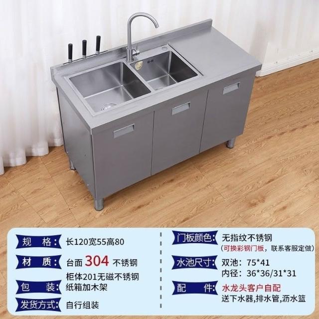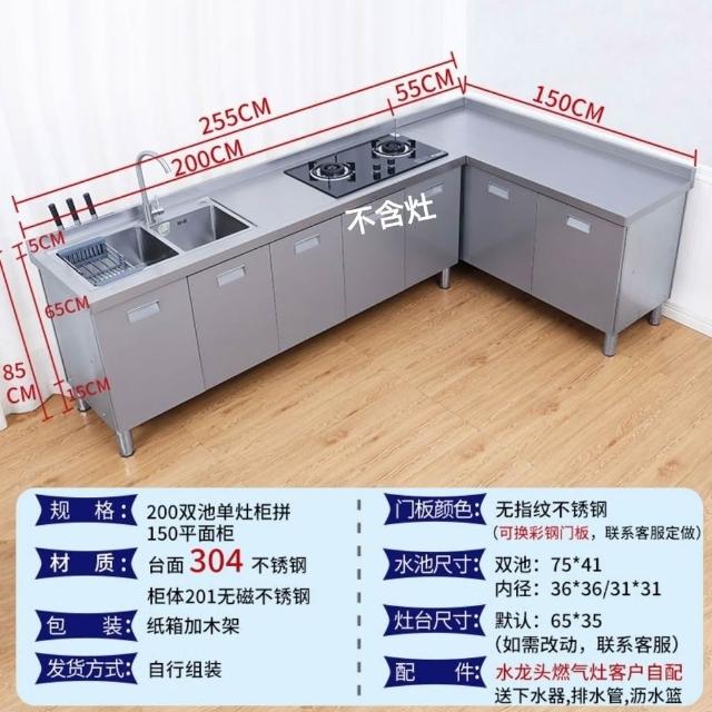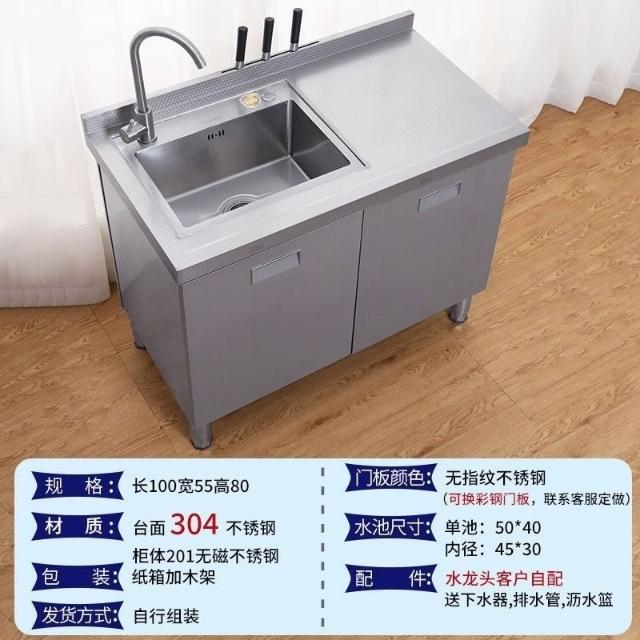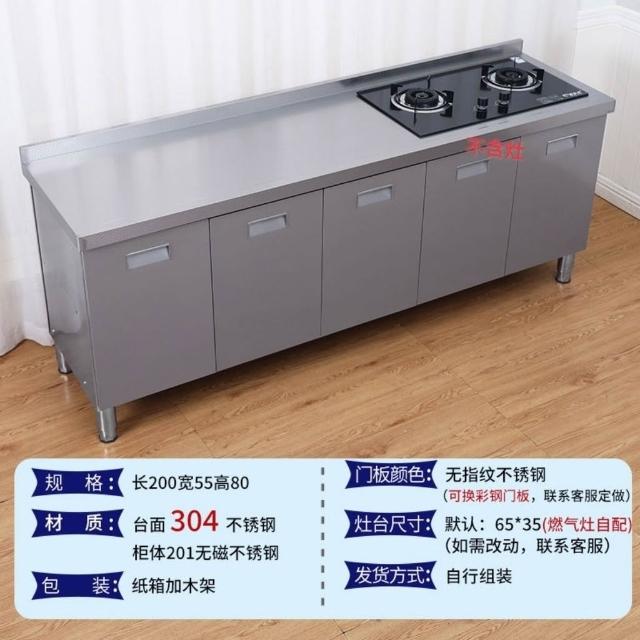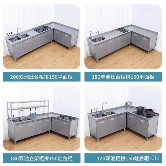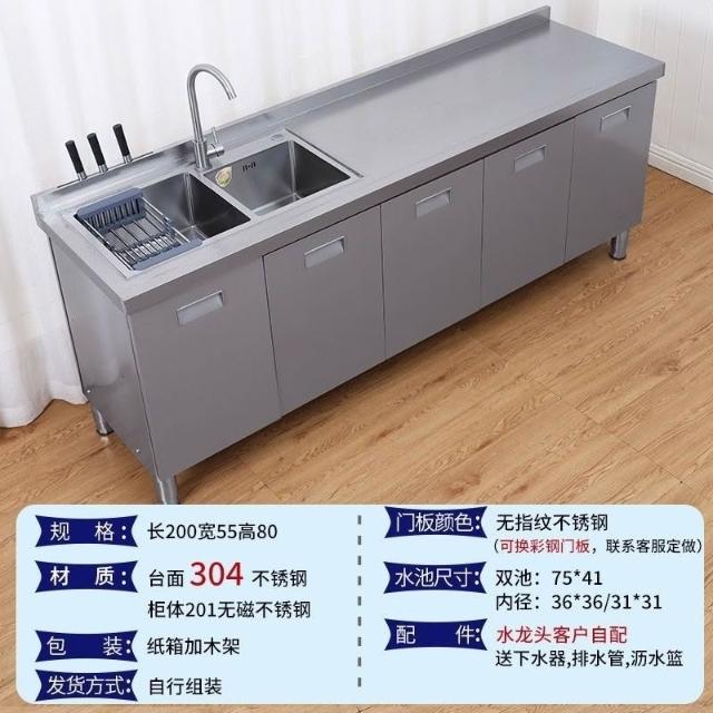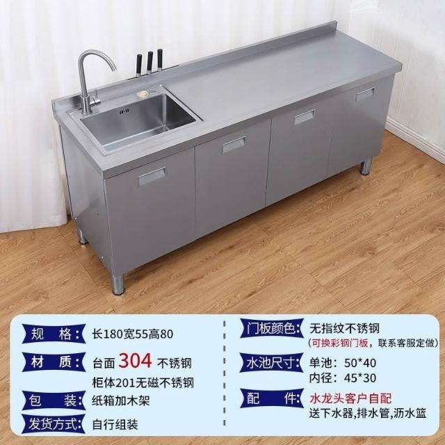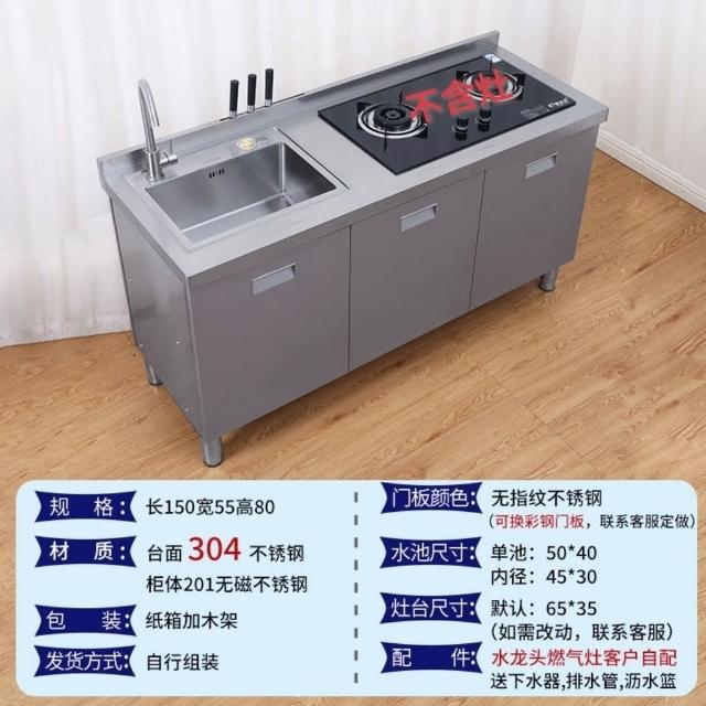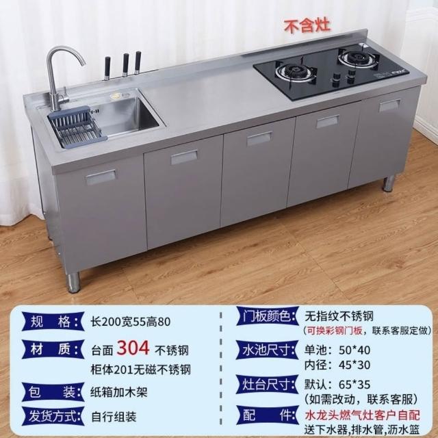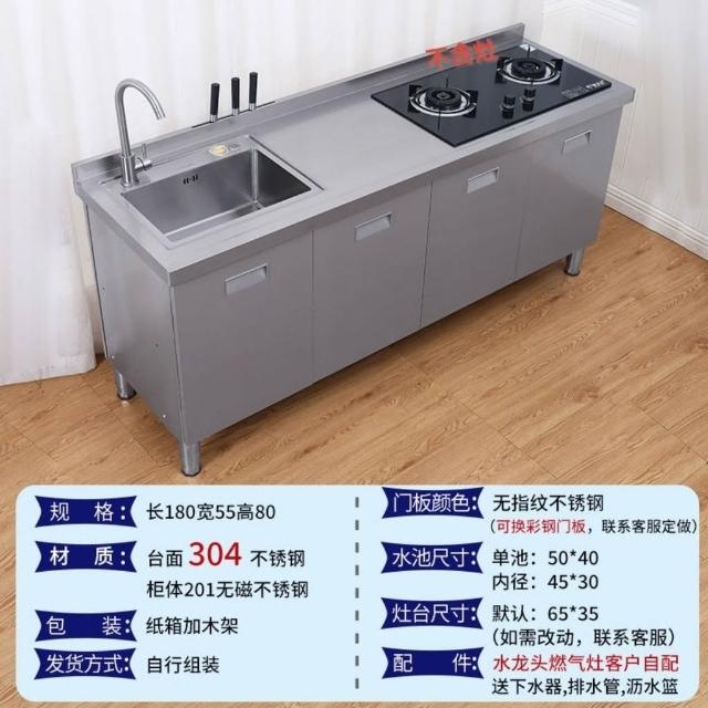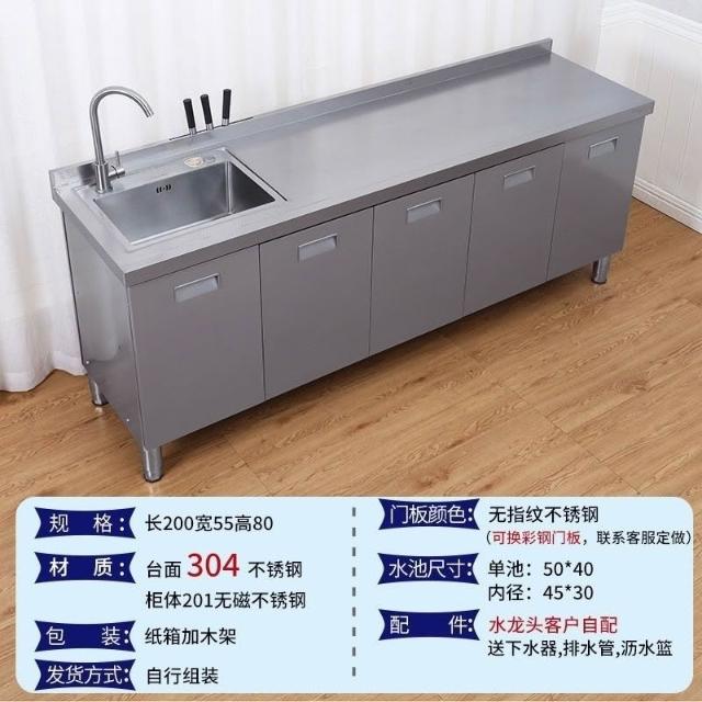 /不銹鋼304臺麵工作臺竈臺操作儲物水池水槽一體櫥櫃家用廚房櫥櫃