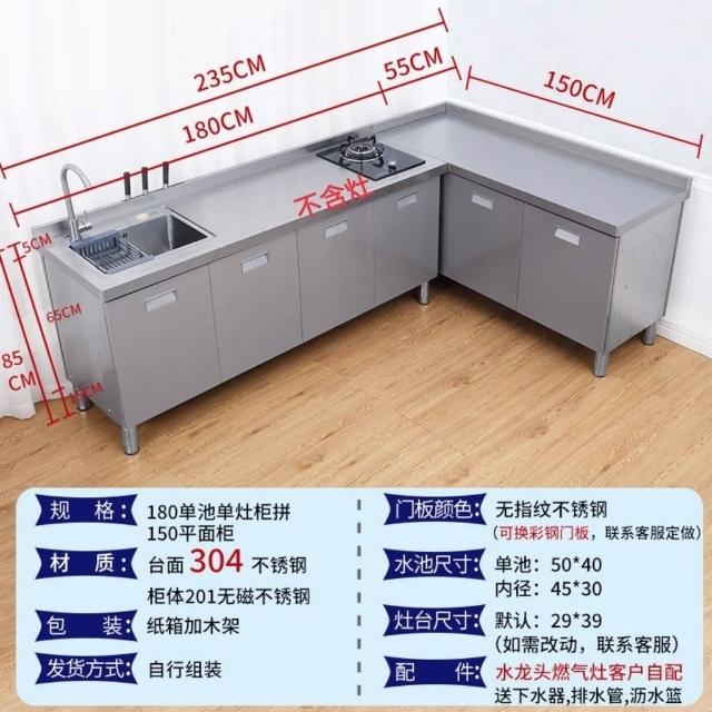/不銹鋼304臺麵工作臺竈臺操作儲物水池水槽一體櫥櫃家用廚房櫥櫃