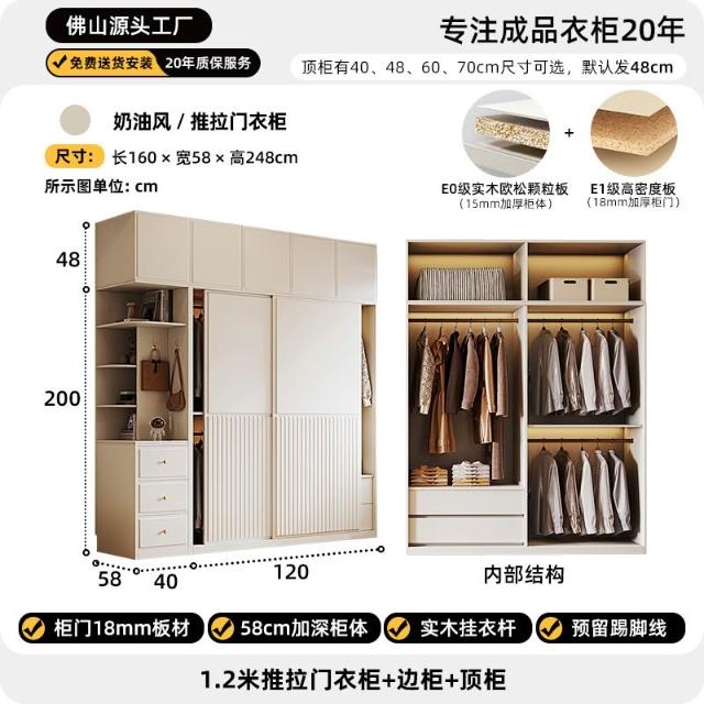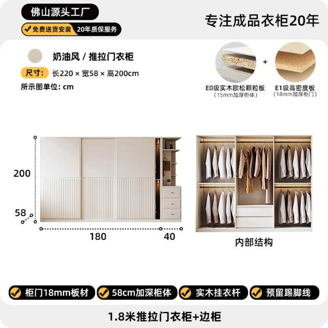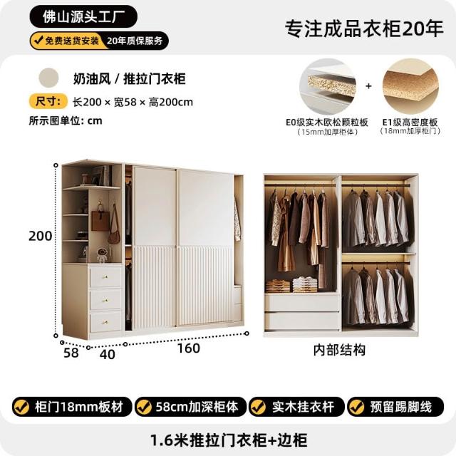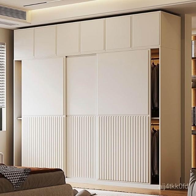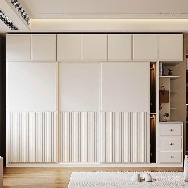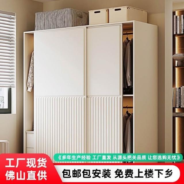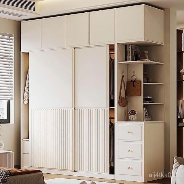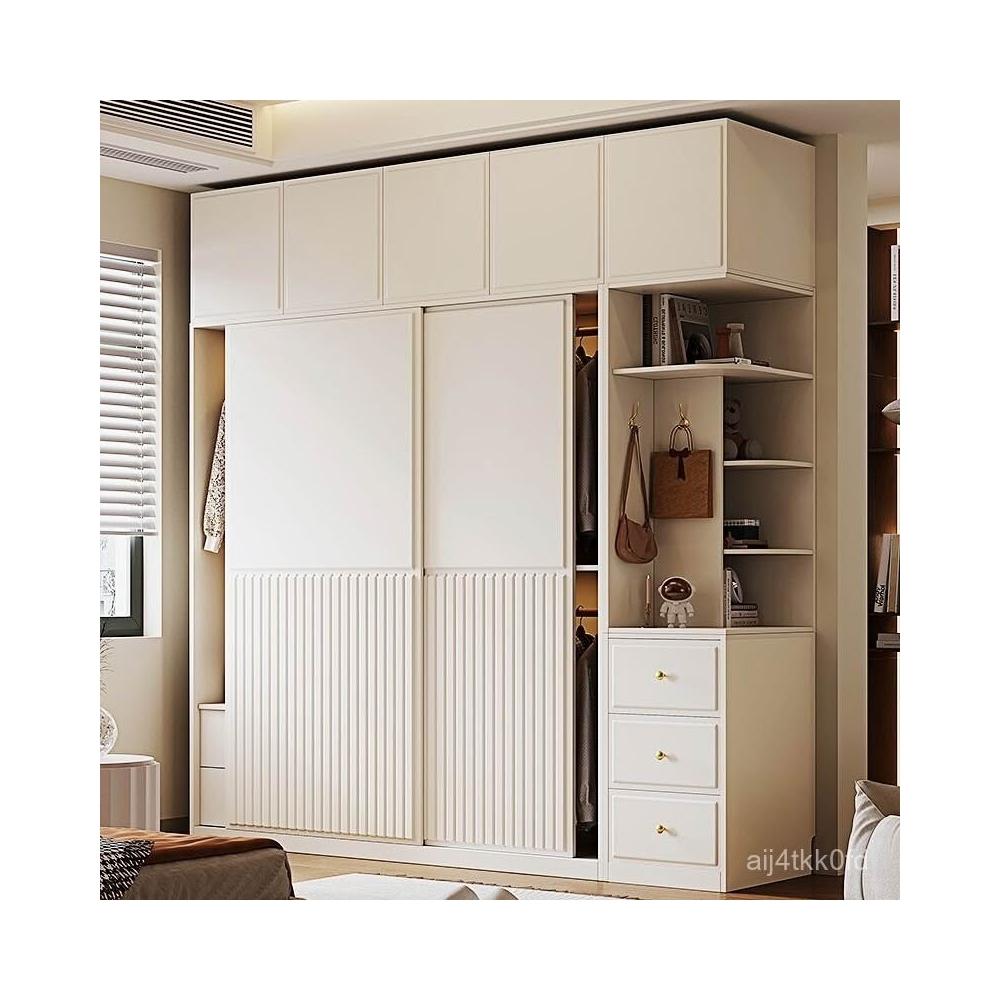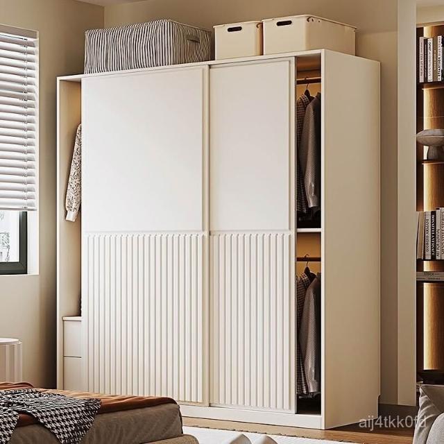 推拉門衣櫃簡約現代白色臥室儲物櫃子小戶型家用滑移門網紅衣櫥