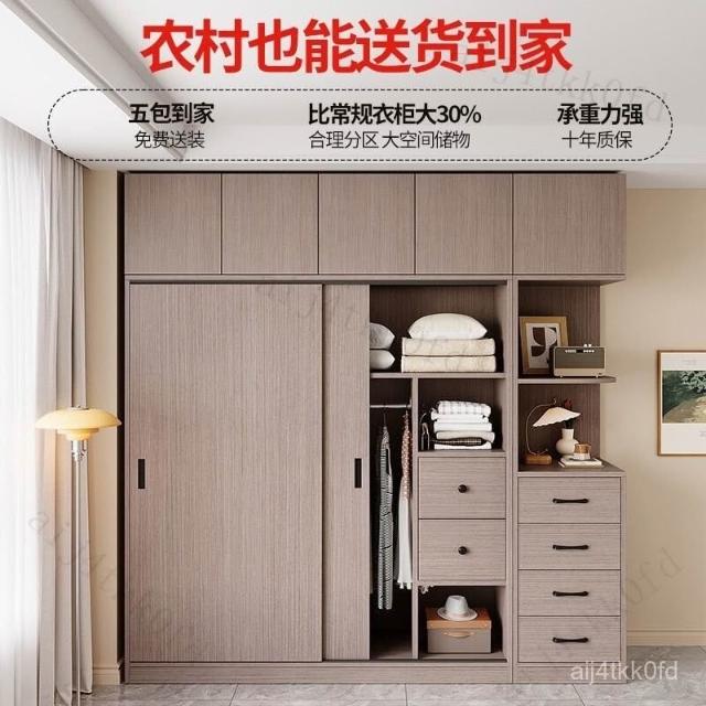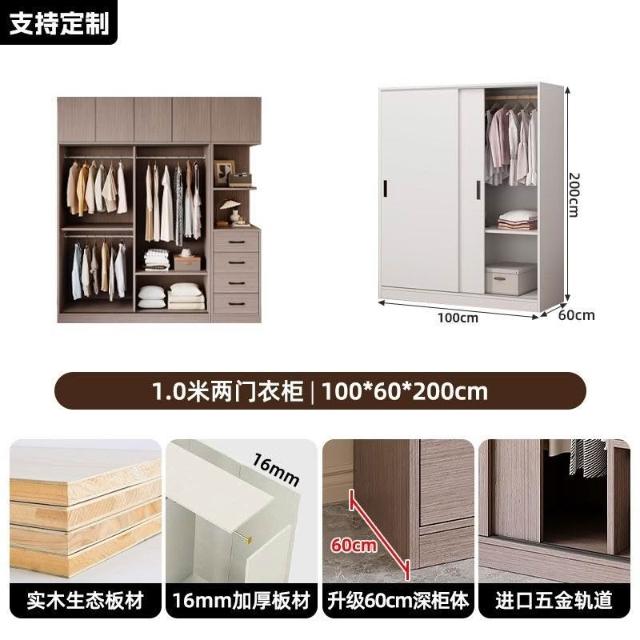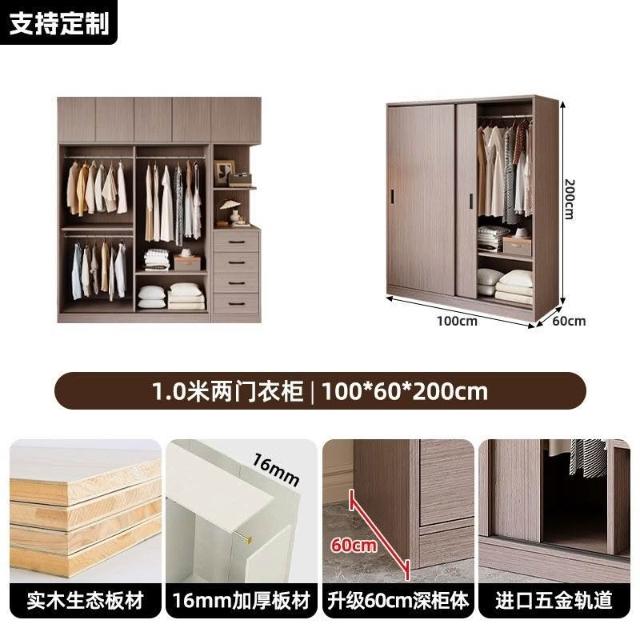 // 厚背闆穩 實木衣櫃家用臥室衣櫥簡約推拉門特價杉木衣櫃兒童衣櫃小戶型衣櫃