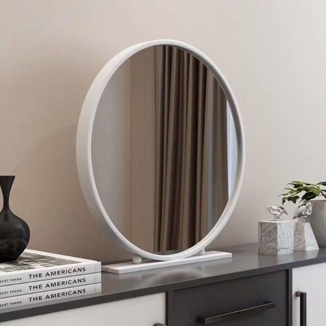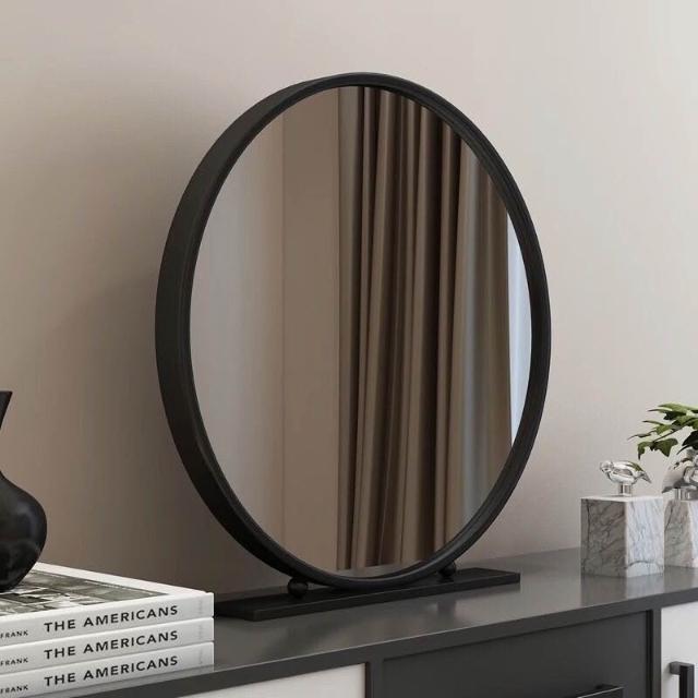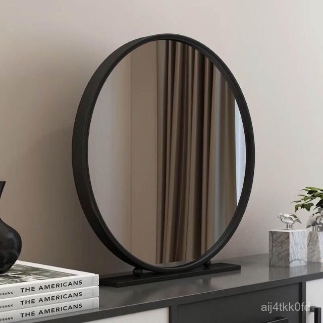 北歐化妝鏡鐵藝圓形臥室梳妝鏡梳妝臺鏡子網紅鏡化妝鏡臺式桌麵