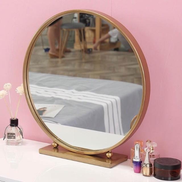 北歐化妝鏡鐵藝圓形臥室梳妝鏡梳妝臺鏡子網紅鏡化妝鏡臺式桌麵