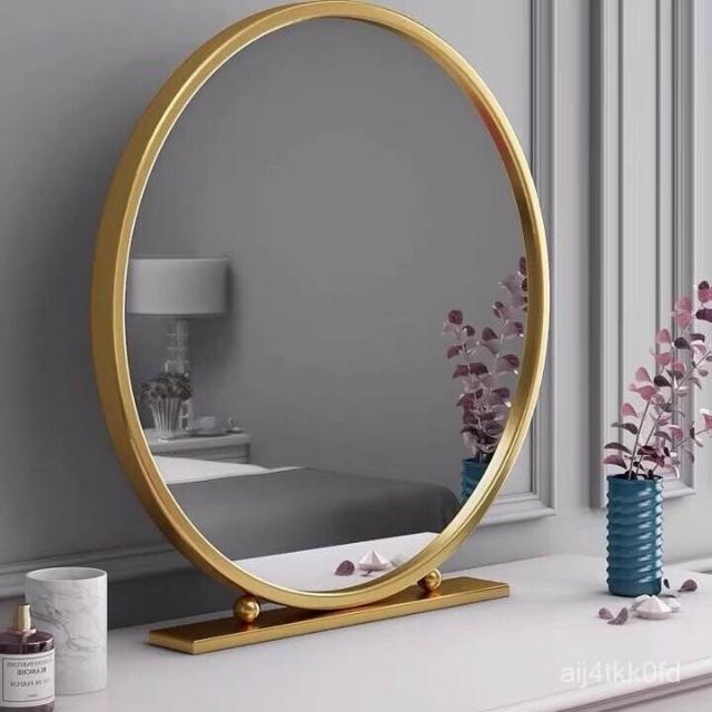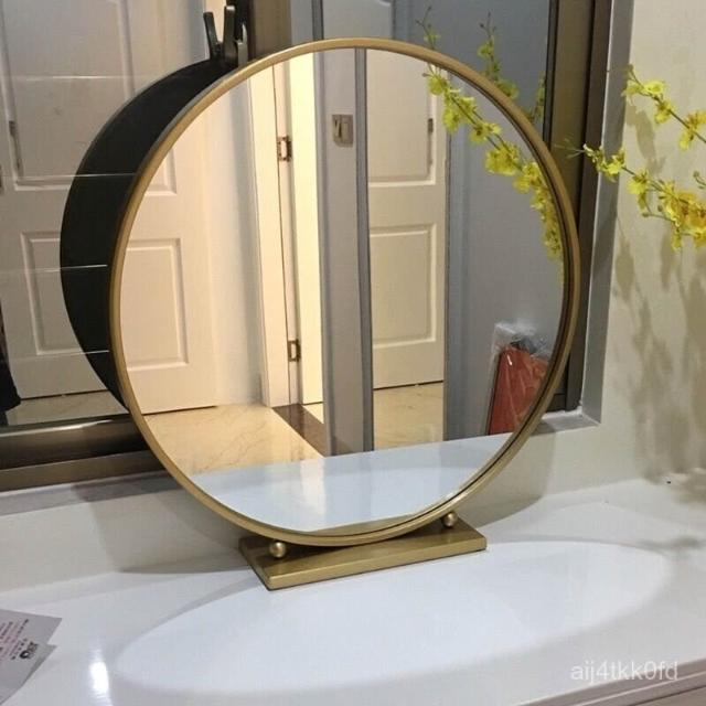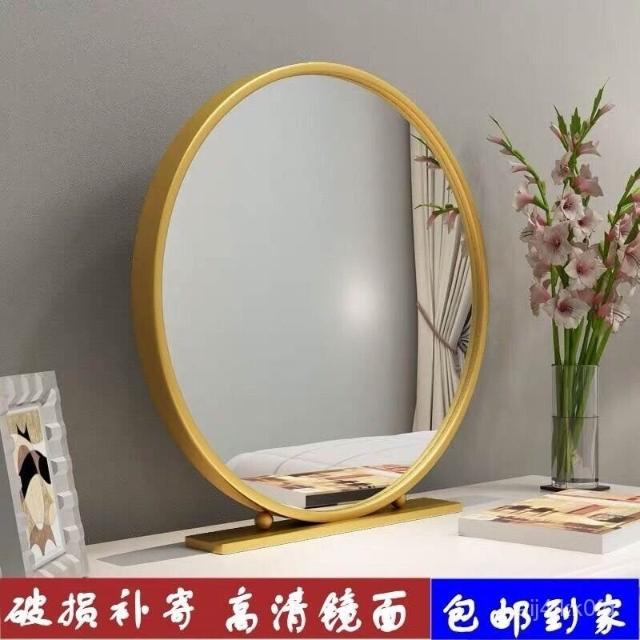 北歐化妝鏡鐵藝圓形臥室梳妝鏡梳妝臺鏡子網紅鏡化妝鏡臺式桌麵