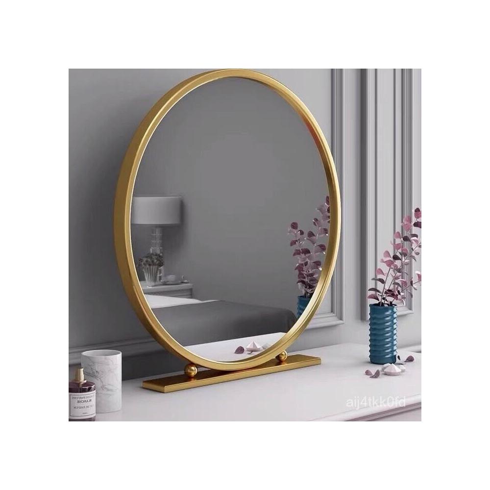 北歐化妝鏡鐵藝圓形臥室梳妝鏡梳妝臺鏡子網紅鏡化妝鏡臺式桌麵