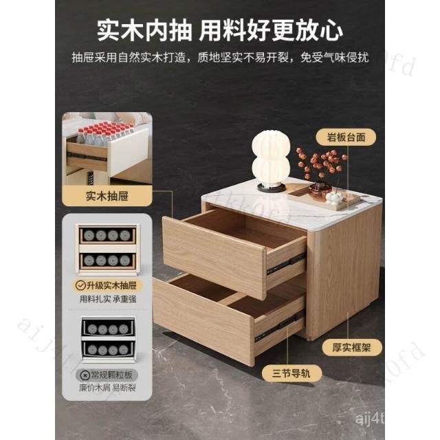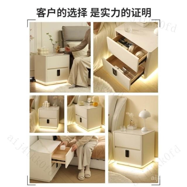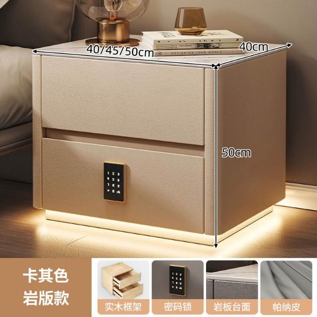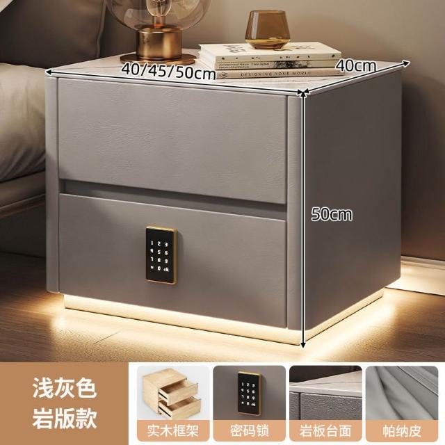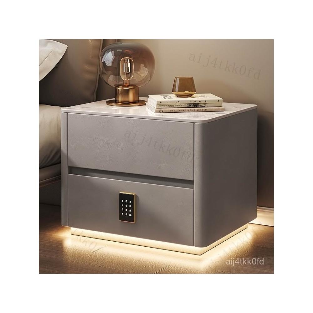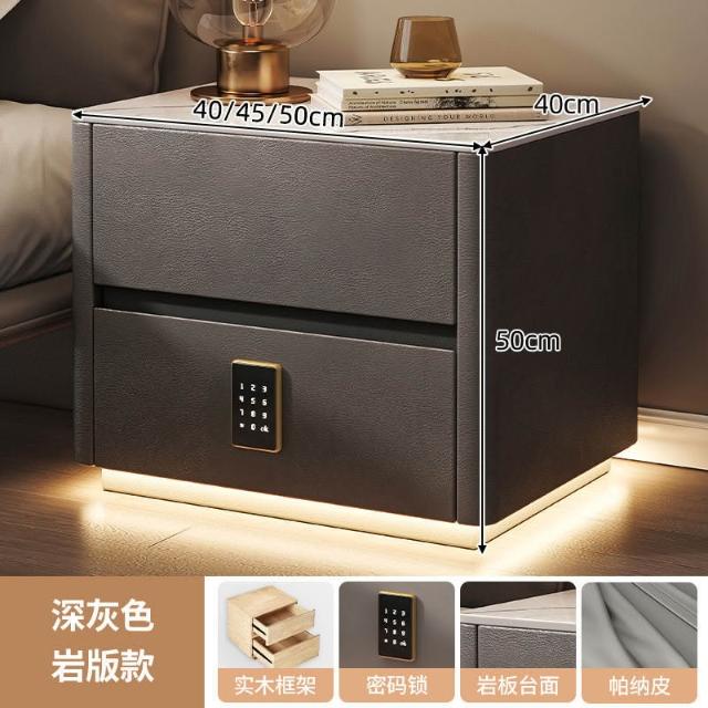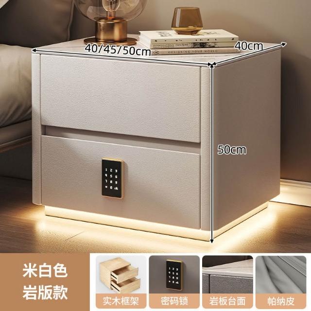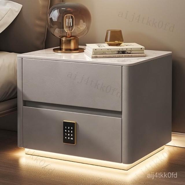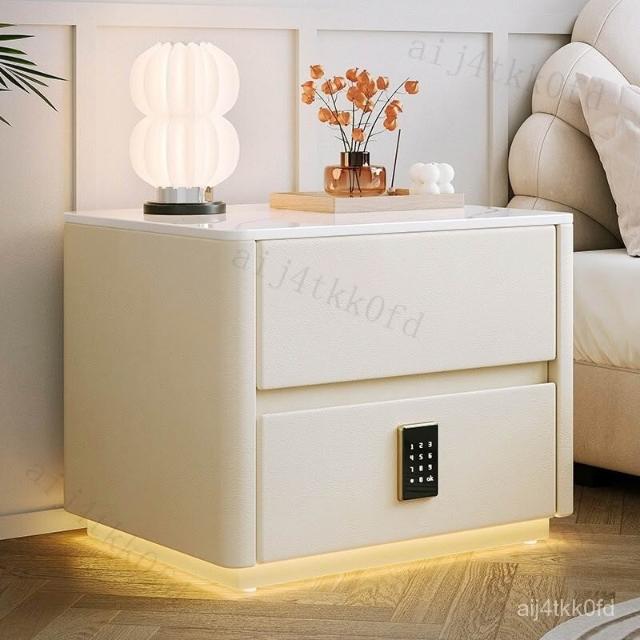 智能床頭櫃簡約現代多功能實木床邊櫃子帶指紋鎖USB充電臥室收納