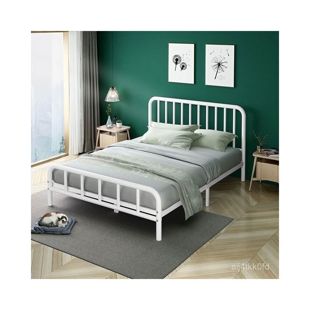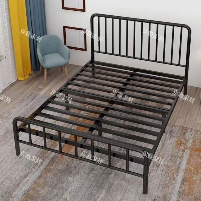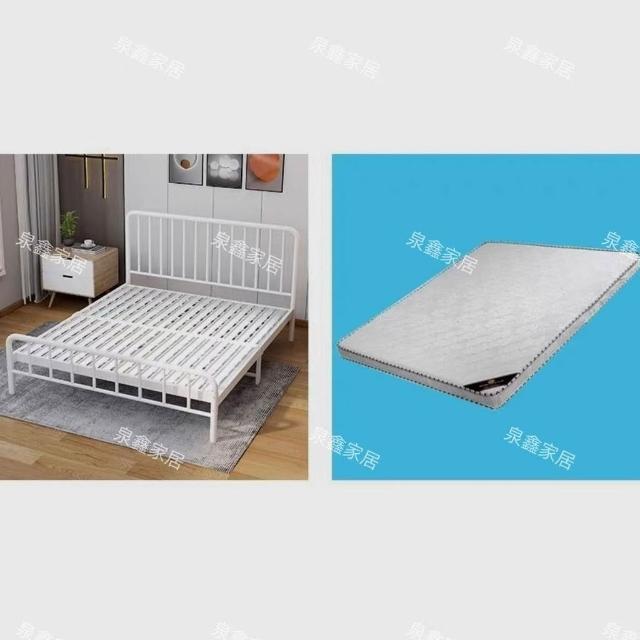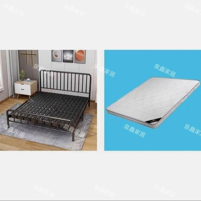//鐵藝床鐵床雙人床簡約現代1.8米鐵床1.5出租房1m單人床帶床墊組裝 鐵架床 床架 排骨架鐵床