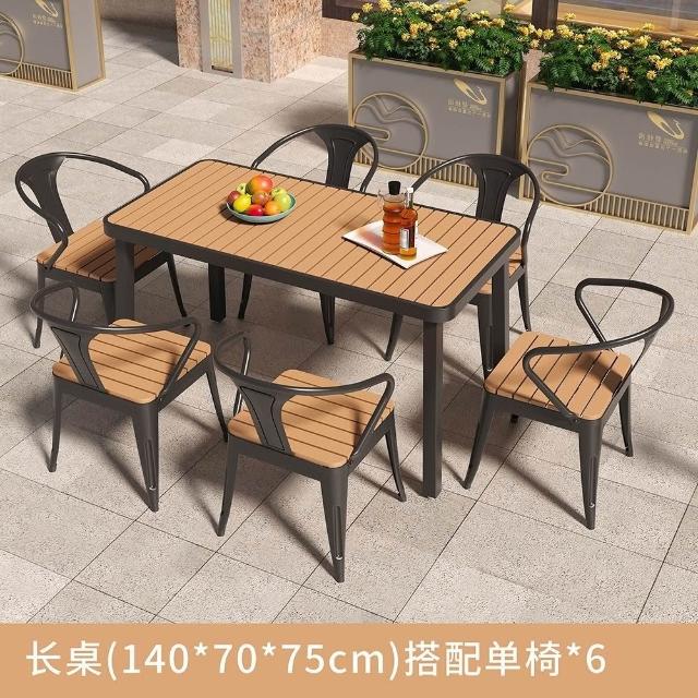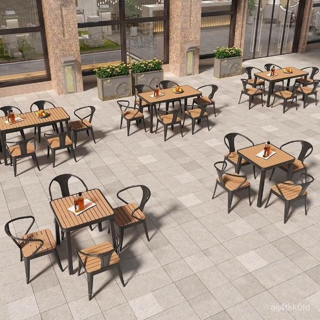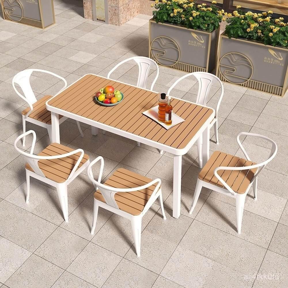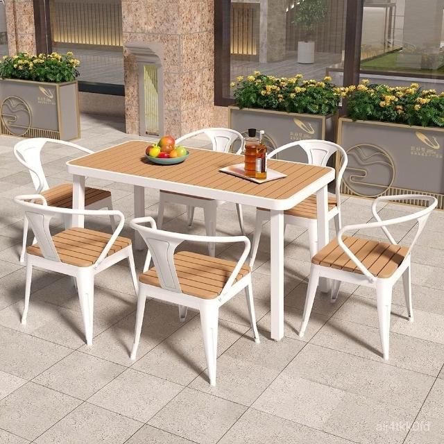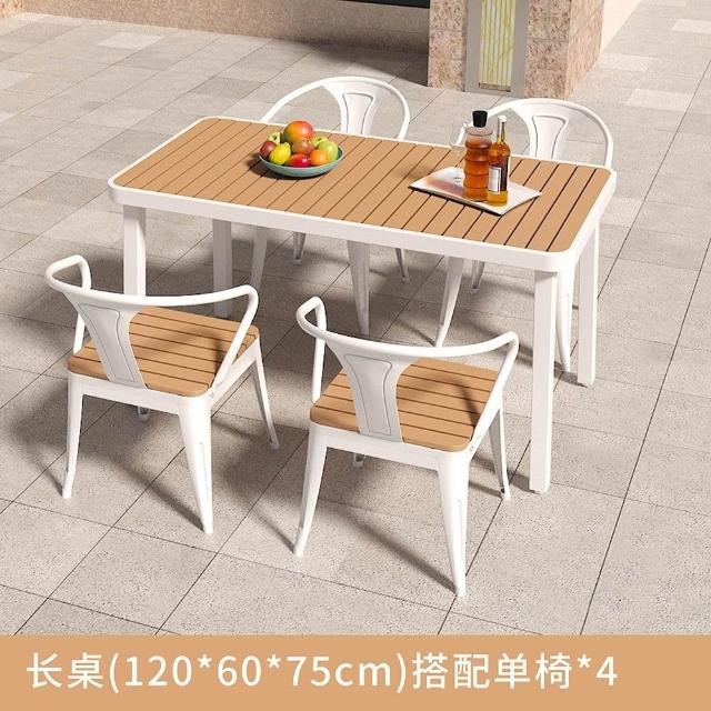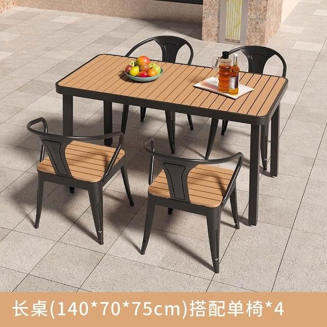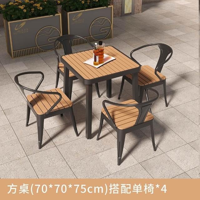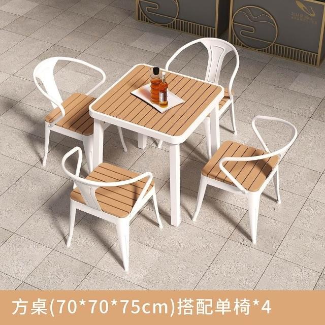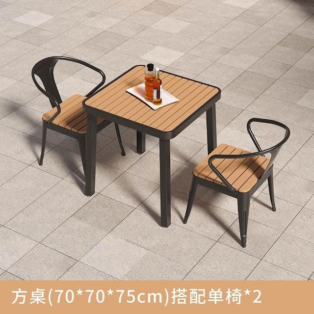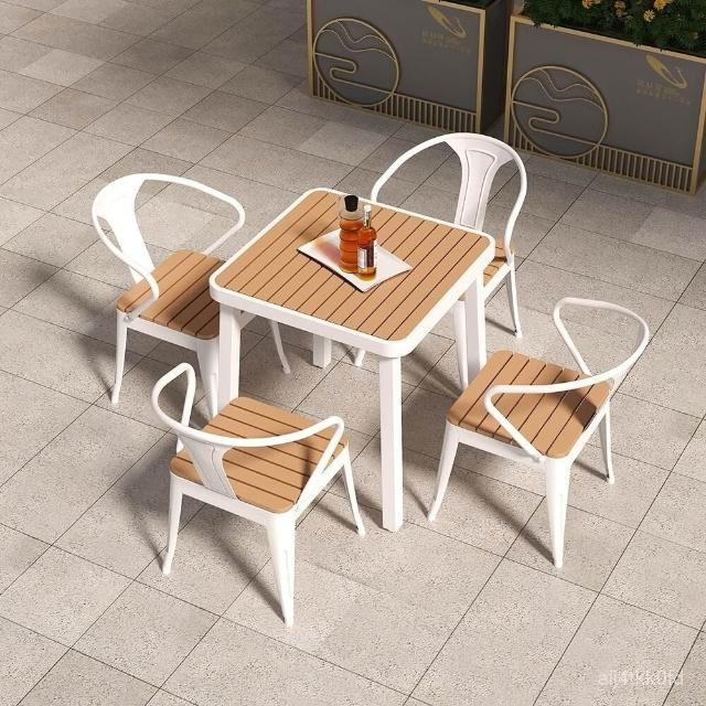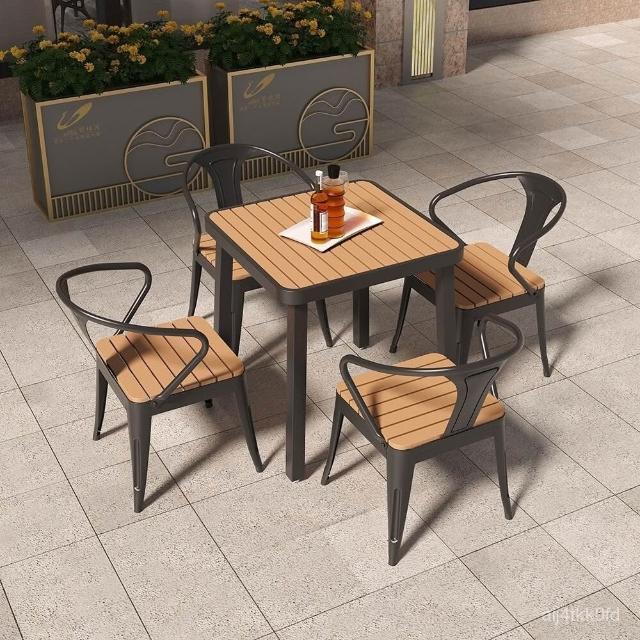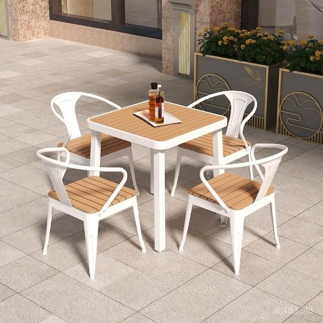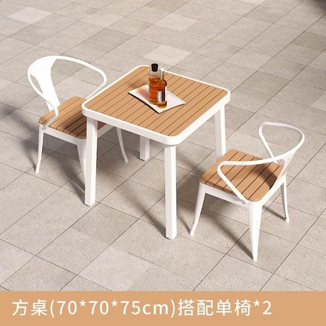 簡約戶外桌椅陽臺庭院花園桌塑木露天防曬防水休閒奶茶店桌椅組閤