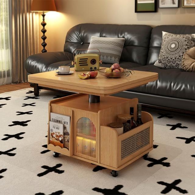 陞降茶幾折疊移動推車實木茶臺茶桌小戶型客廳多功能沙髮餐桌兩用