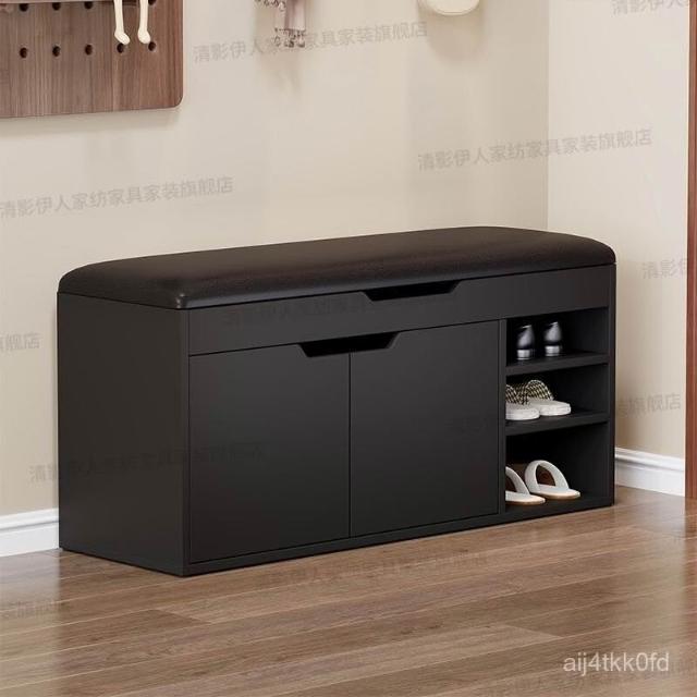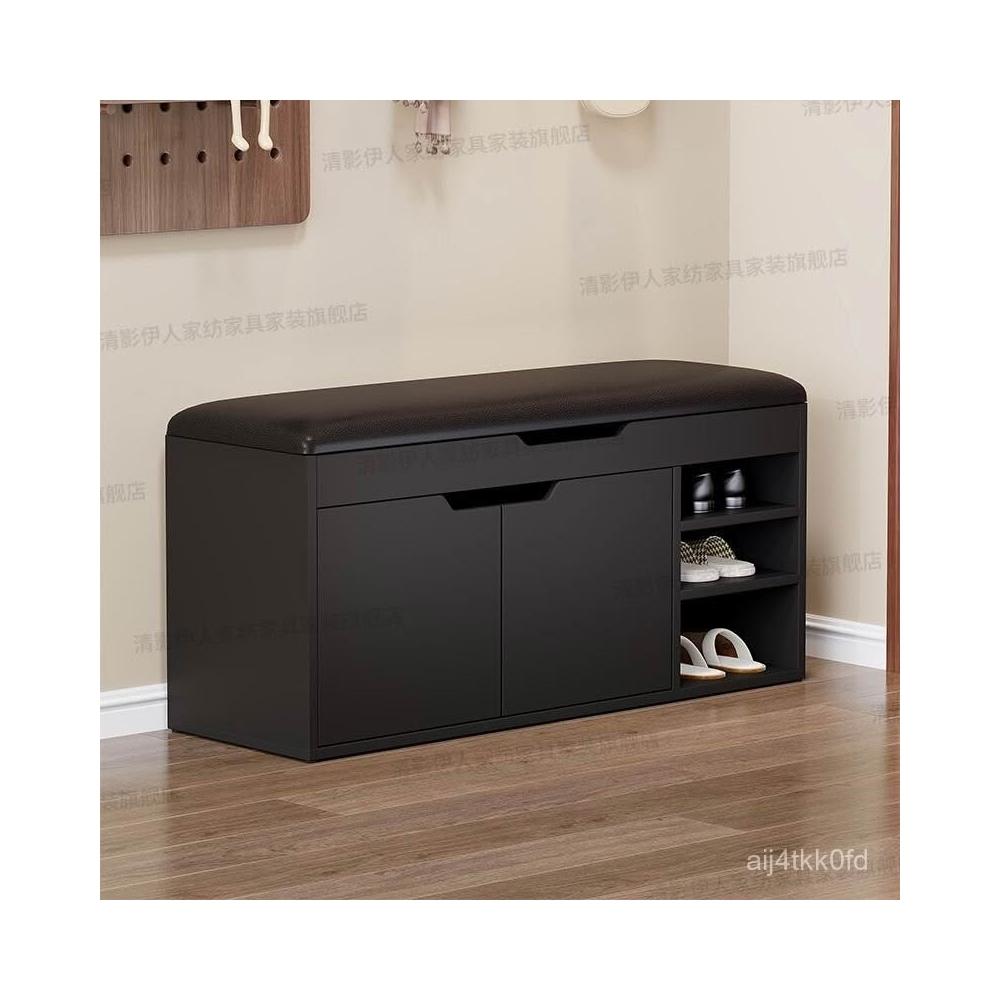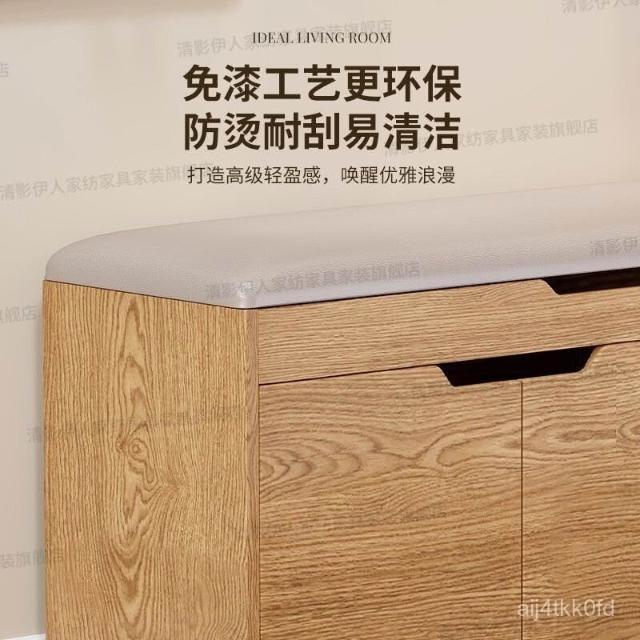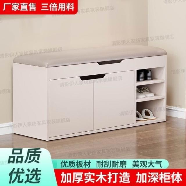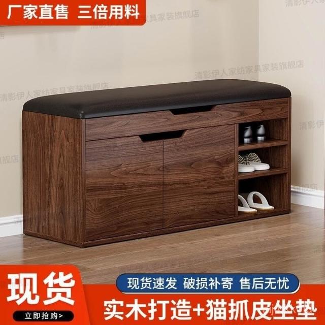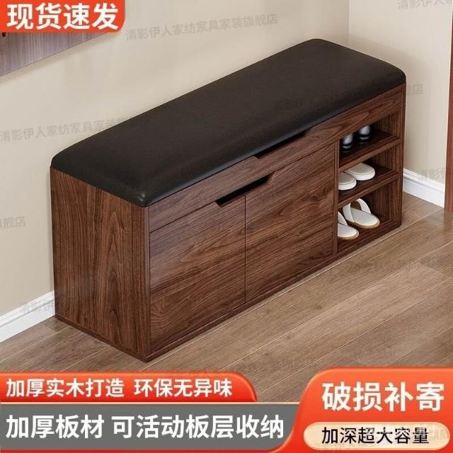 /入戶門口實木換鞋凳家用鞋櫃坐凳一體鞋架軟包墊玄關免安裝穿鞋凳