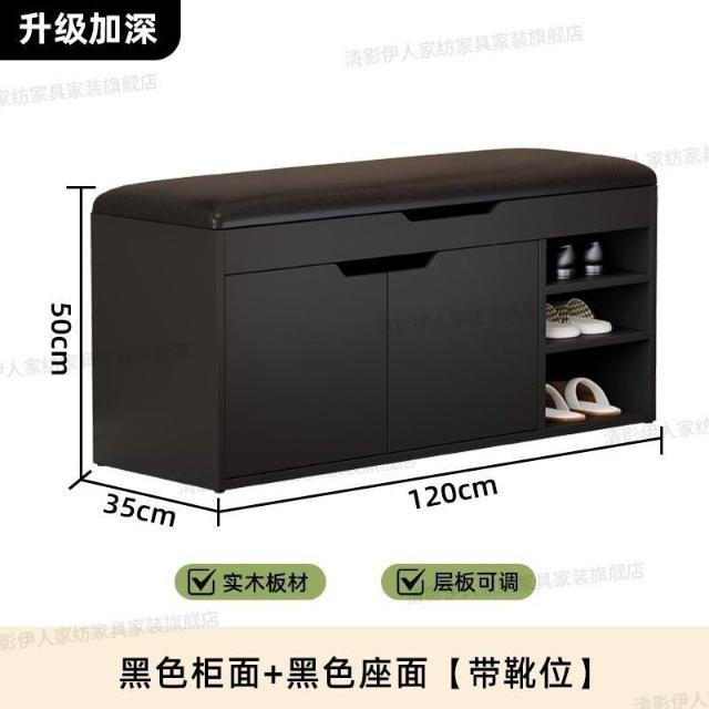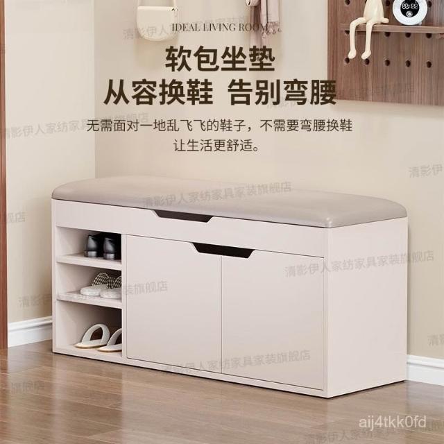 /入戶門口實木換鞋凳家用鞋櫃坐凳一體鞋架軟包墊玄關免安裝穿鞋凳