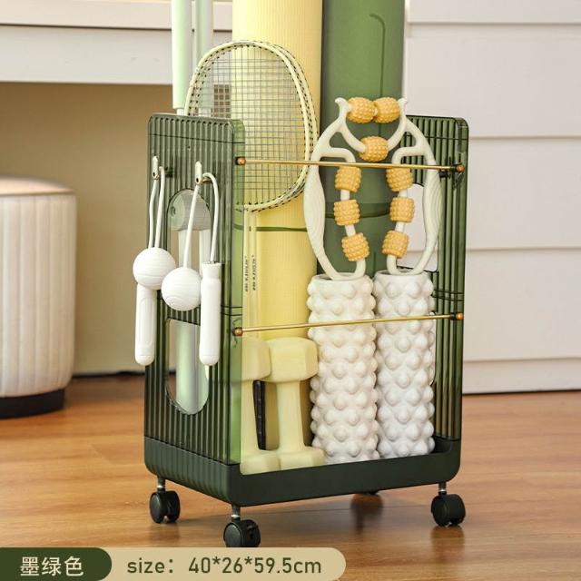 運動器材收納筐健身工具置物架體育器械瑜伽墊滾輪整理架家用室內