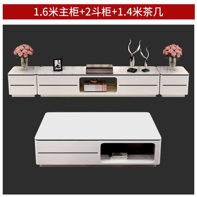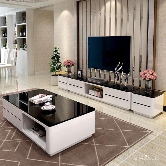 現代簡約電視櫃茶幾組閤套裝客廳鋼化玻璃大理石茶桌茶臺小戶型桌