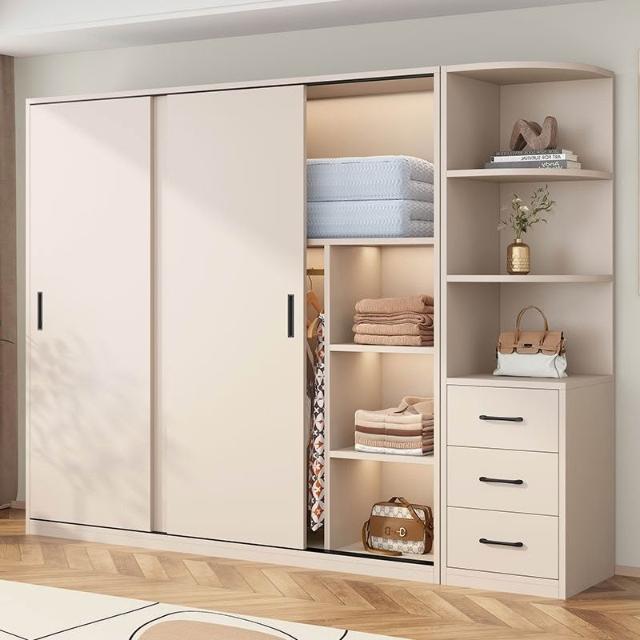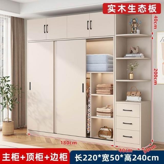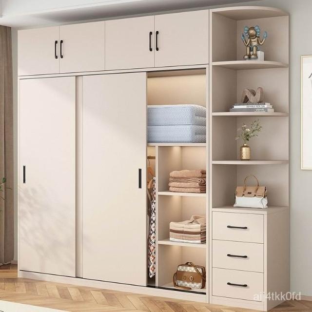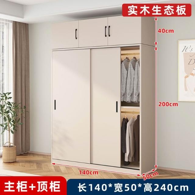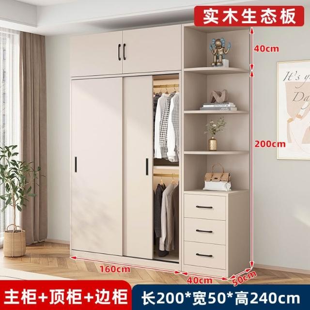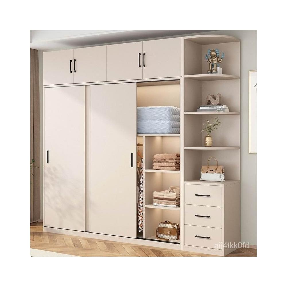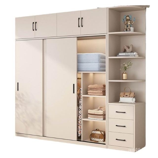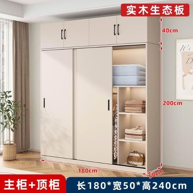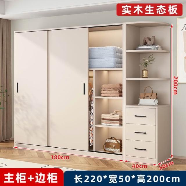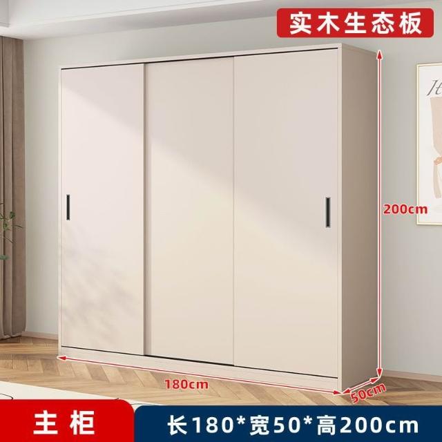 實木衣櫃傢用臥室簡易推拉門兒童衣櫥出租房儲物櫃小戶型收納櫃子