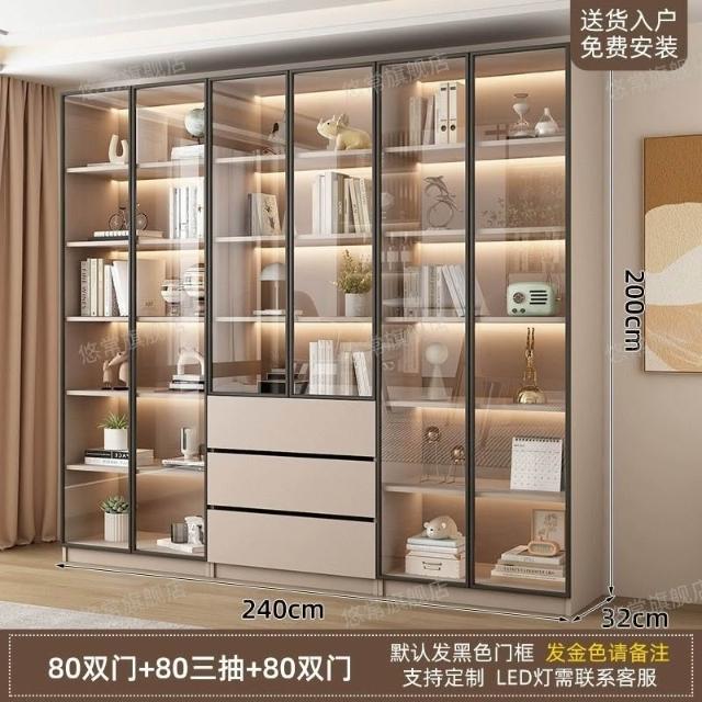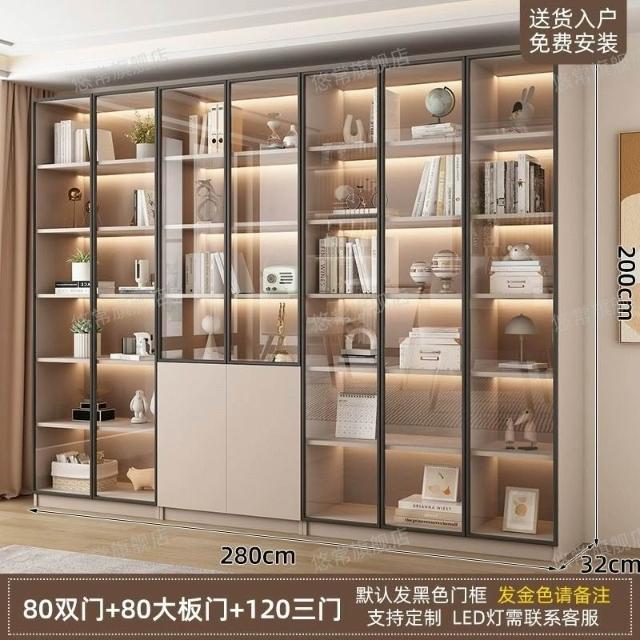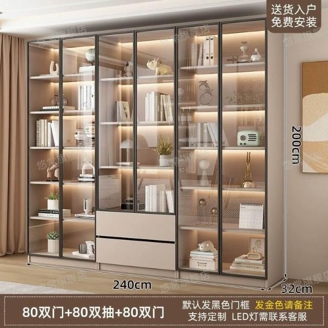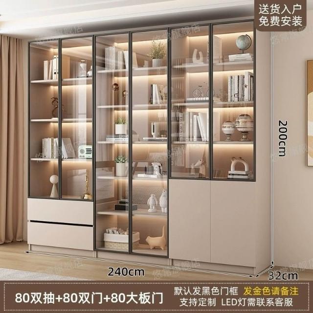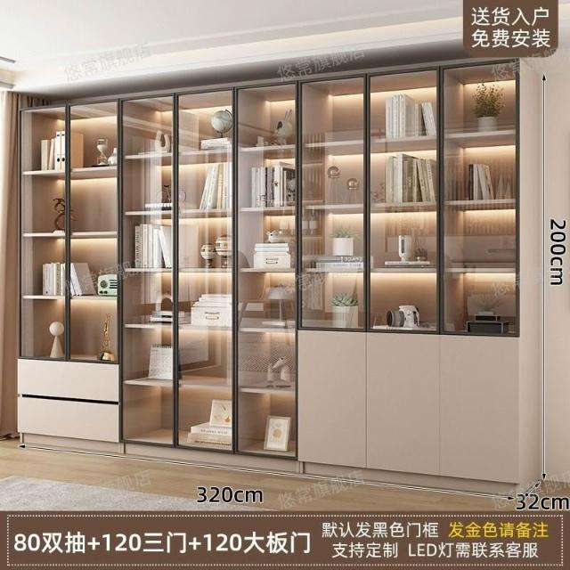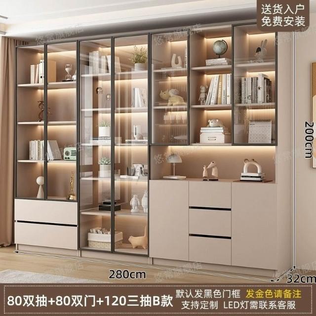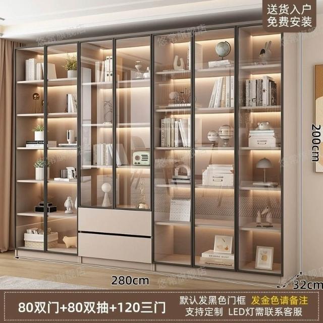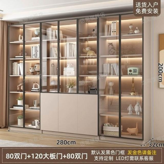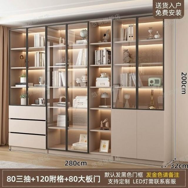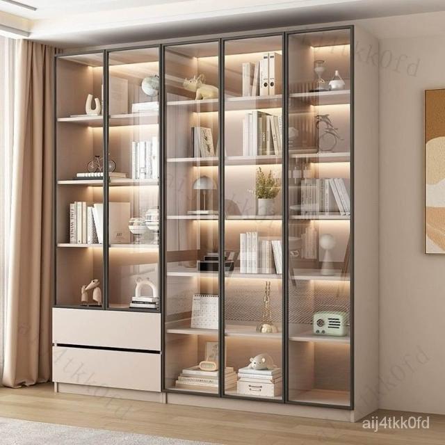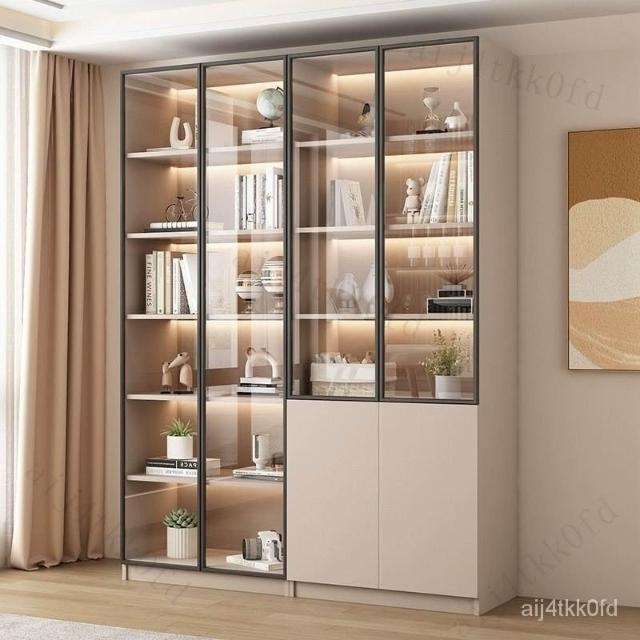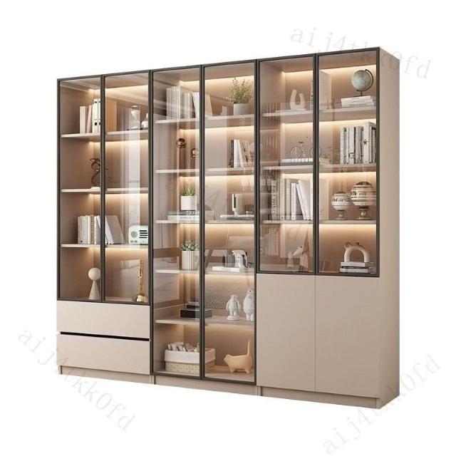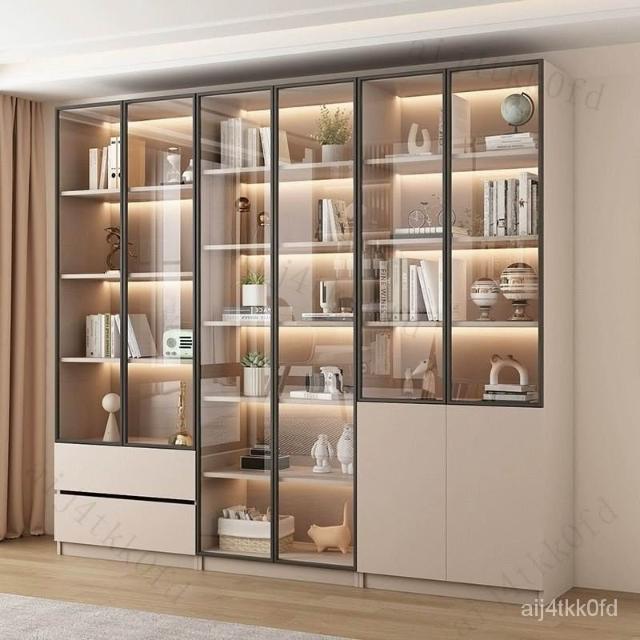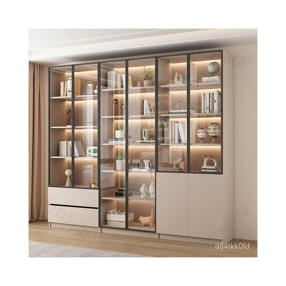 書櫃傢用帶玻璃門客廳一體整墻現代輕奢定製儲物櫃書架防塵展示櫃