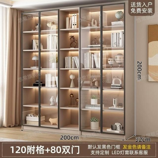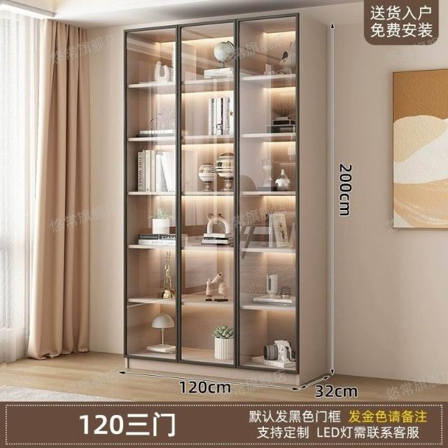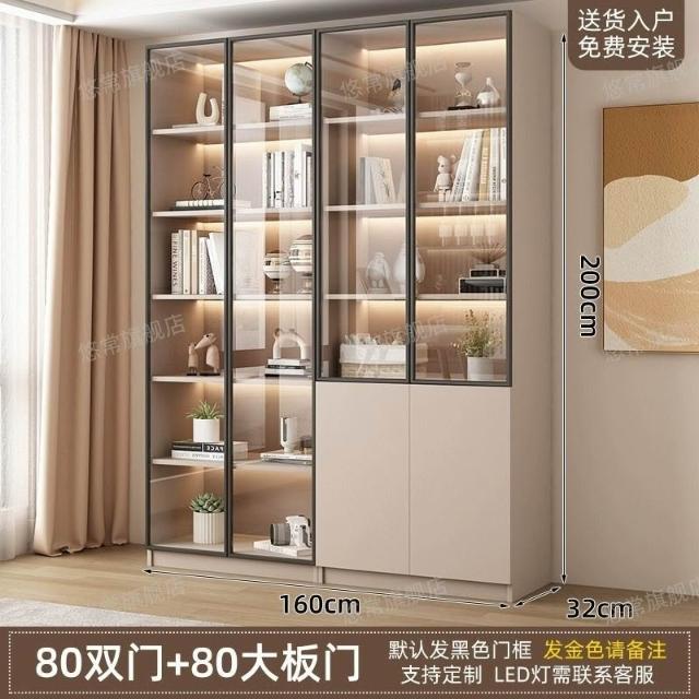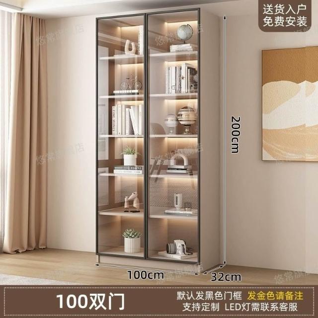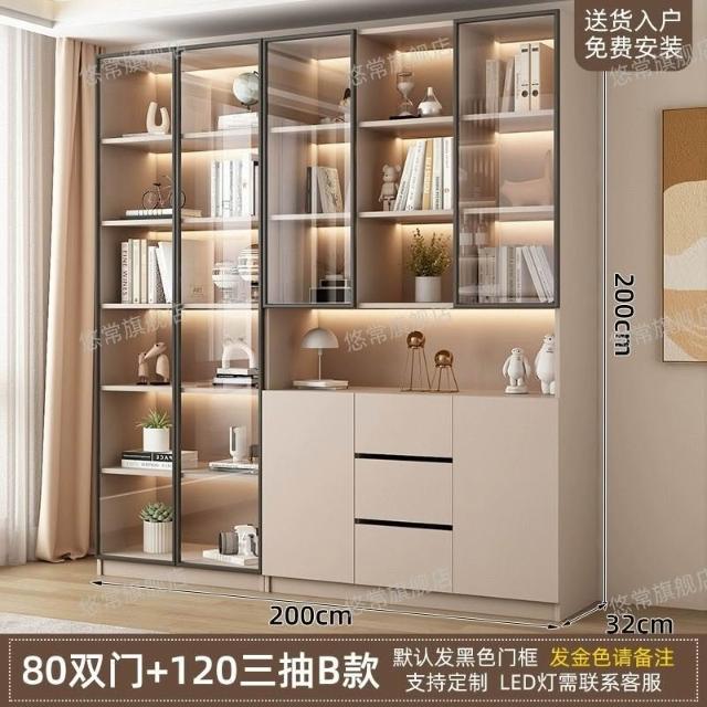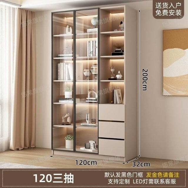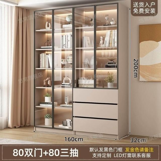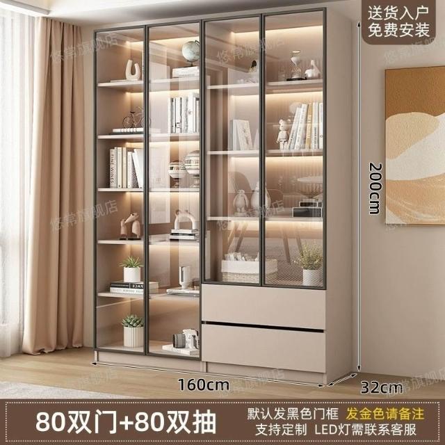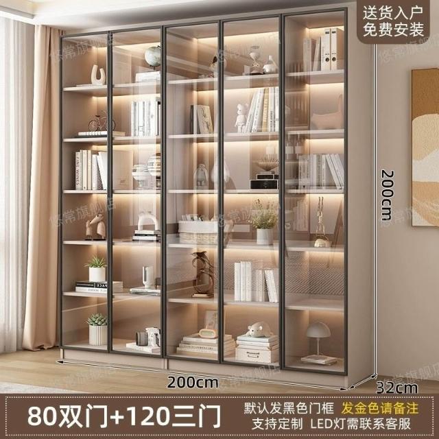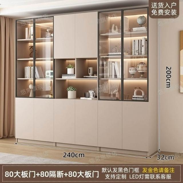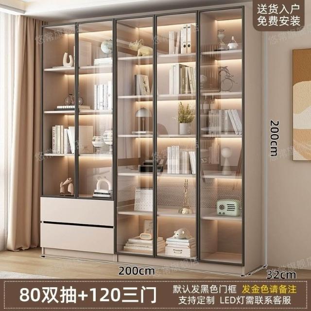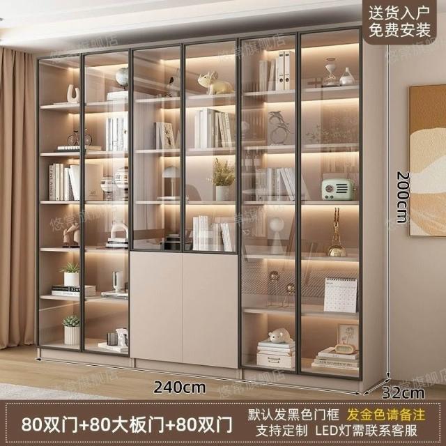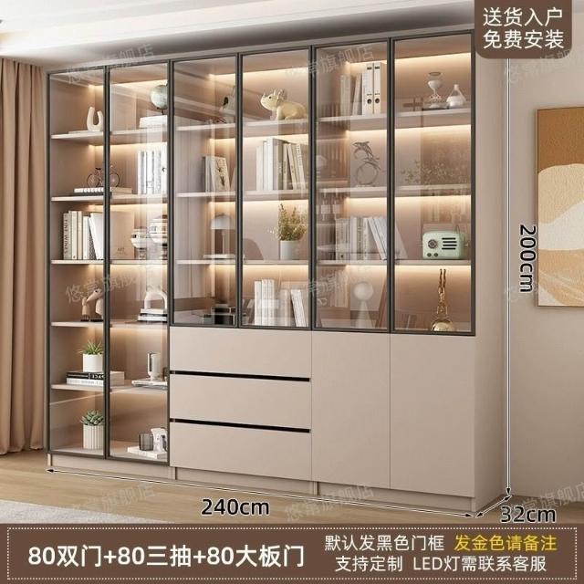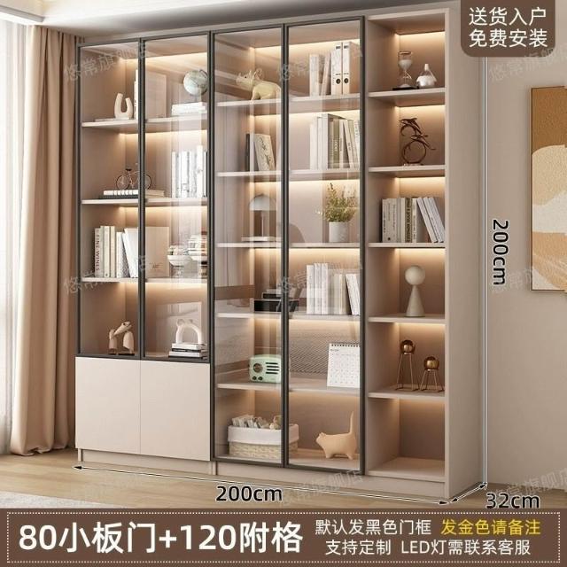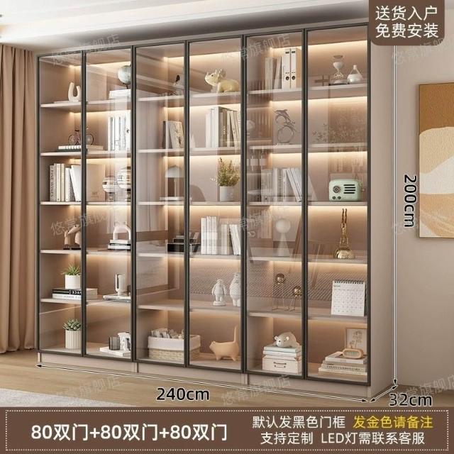 書櫃傢用帶玻璃門客廳一體整墻現代輕奢定製儲物櫃書架防塵展示櫃