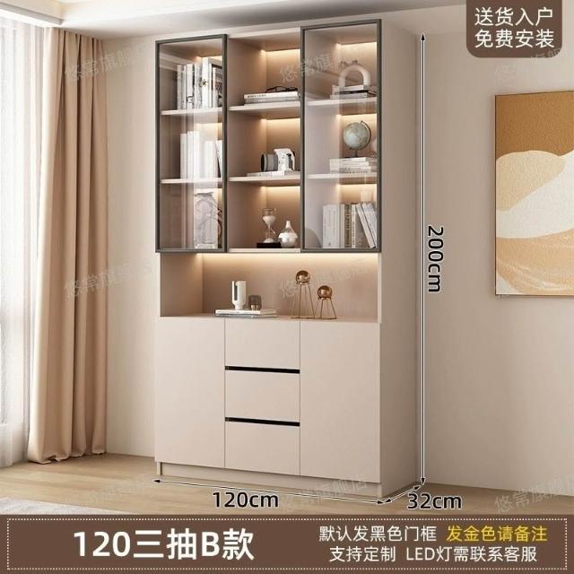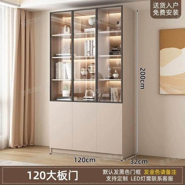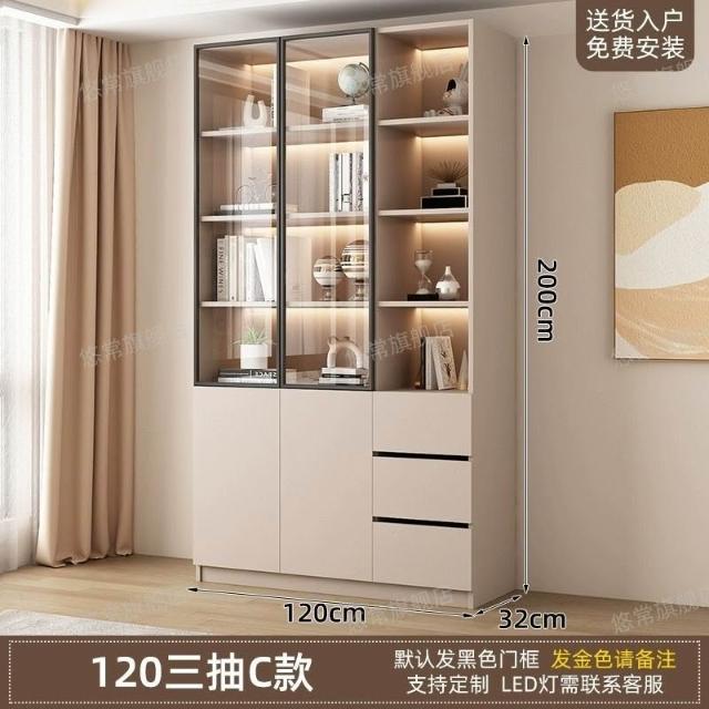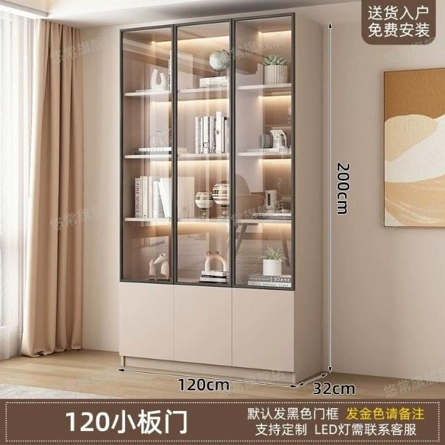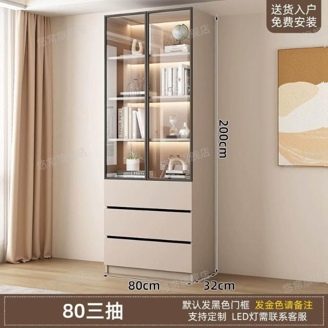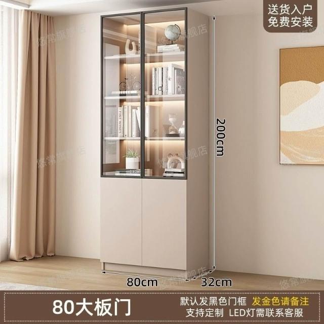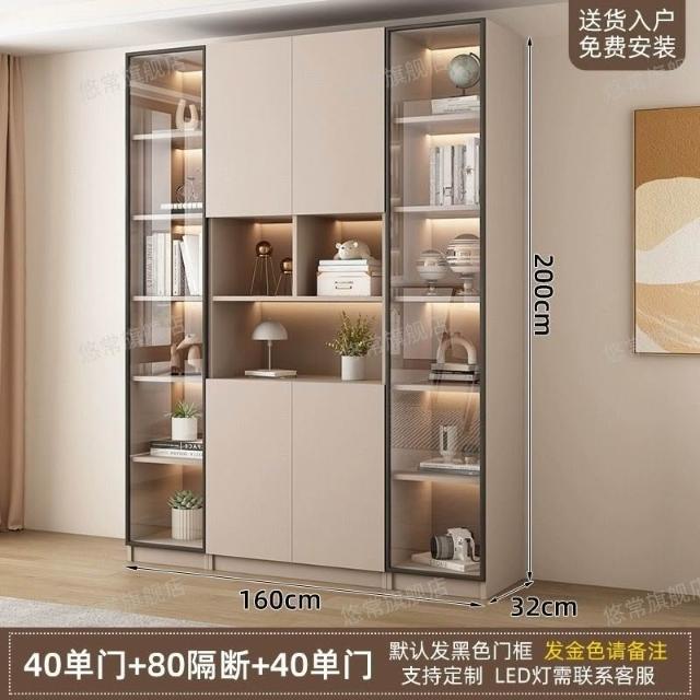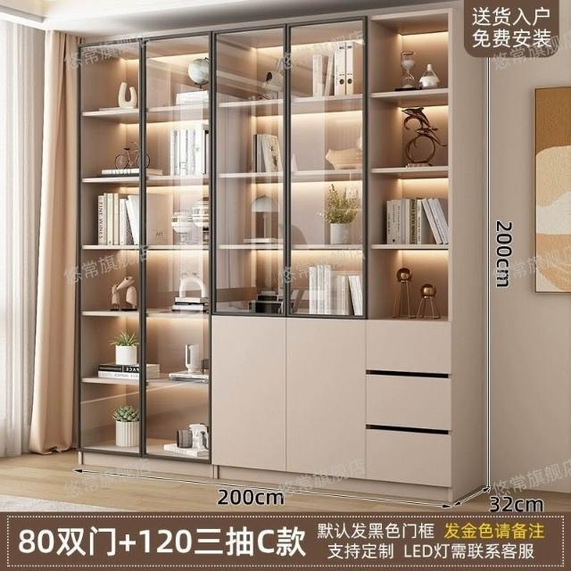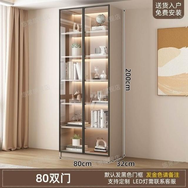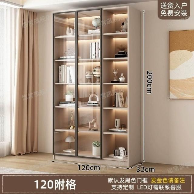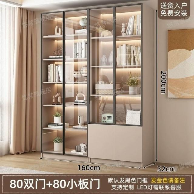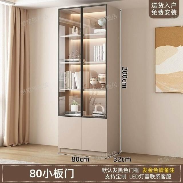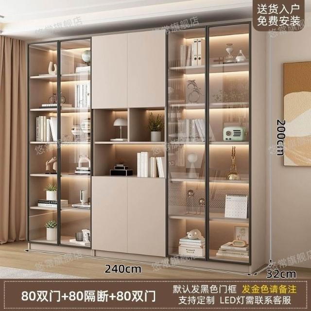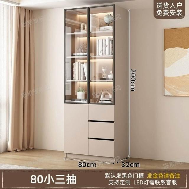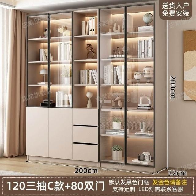書櫃傢用帶玻璃門客廳一體整墻現代輕奢定製儲物櫃書架防塵展示櫃