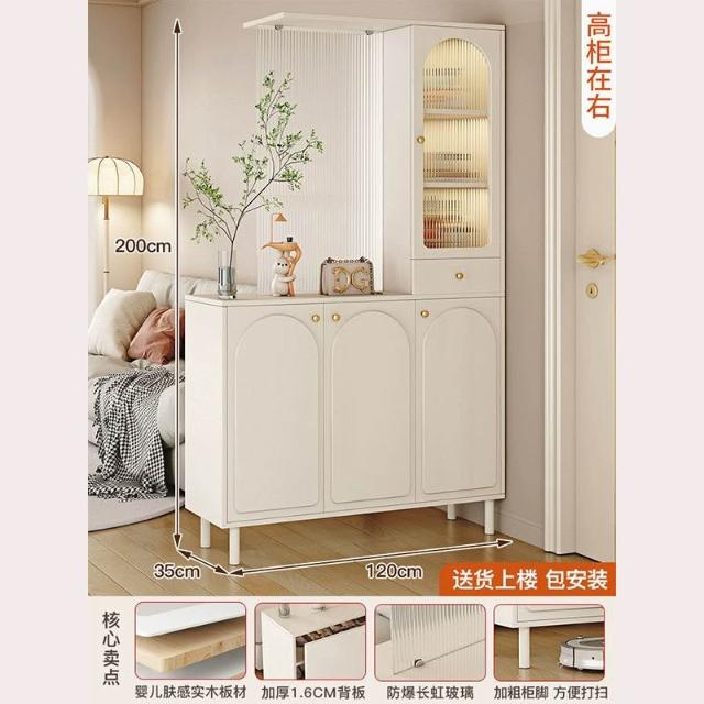 玄關櫃入戶客廳高酒櫃長虹玻璃鞋櫃屏風一體奶油風現代玄關隔斷櫃