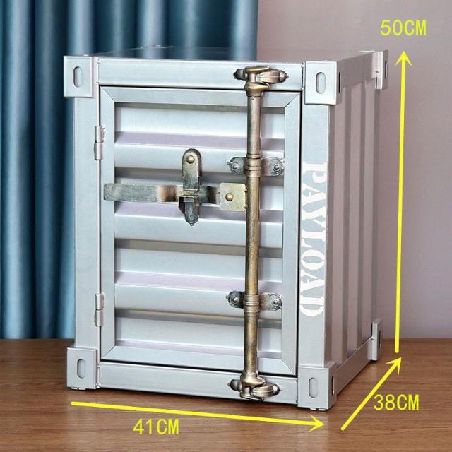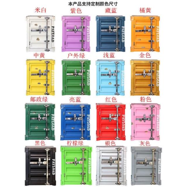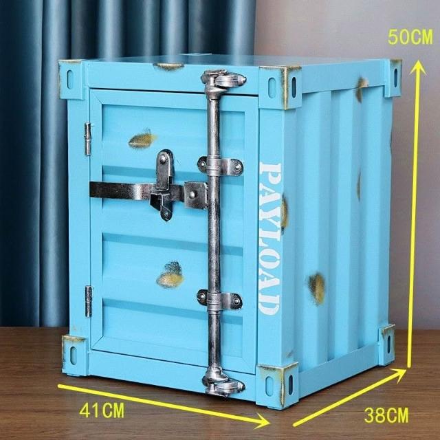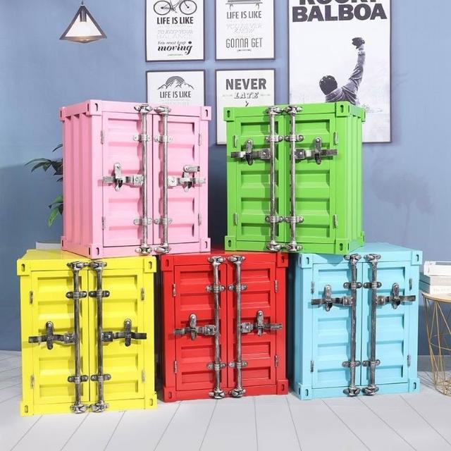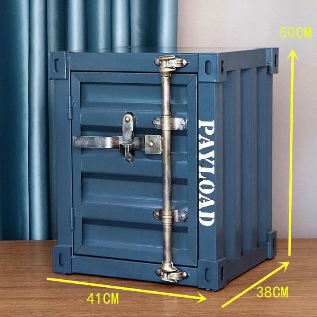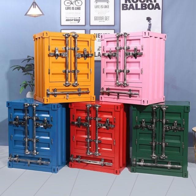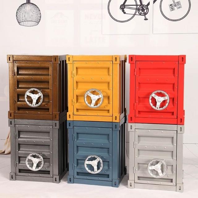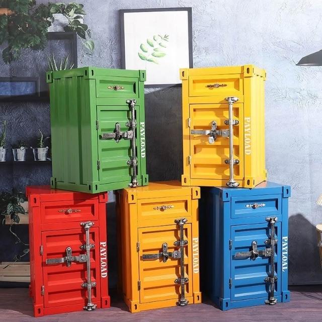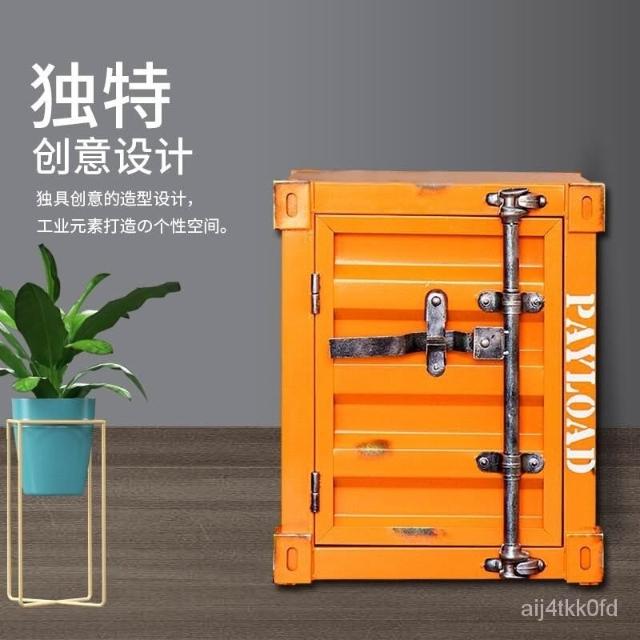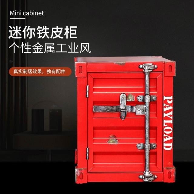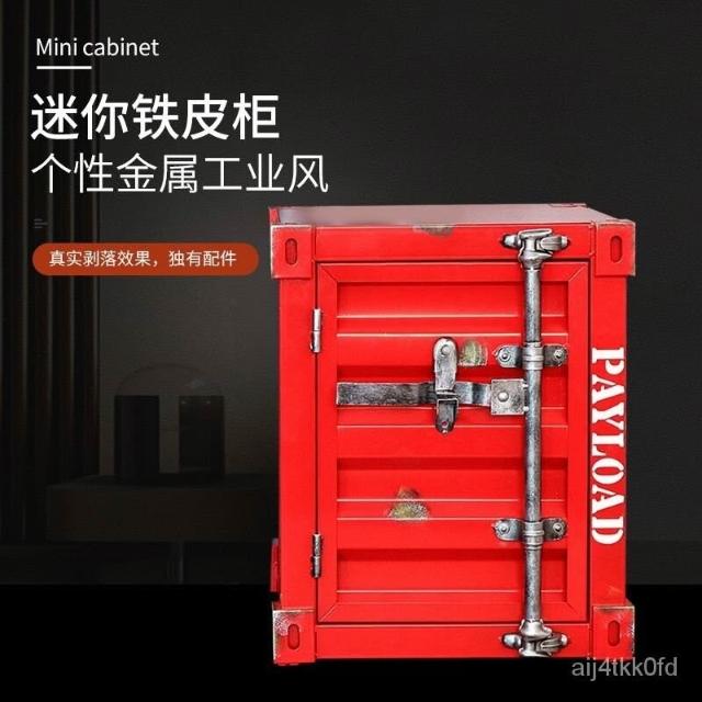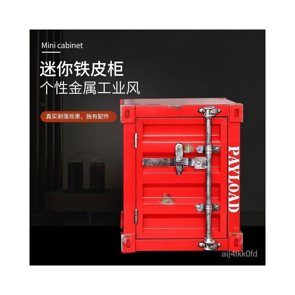 集裝箱櫃子 工業風儲物櫃 鐵藝床頭櫃 帶鎖創意擺件小櫃子 小型收納櫃 鐵皮櫃