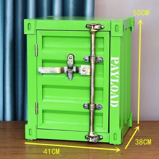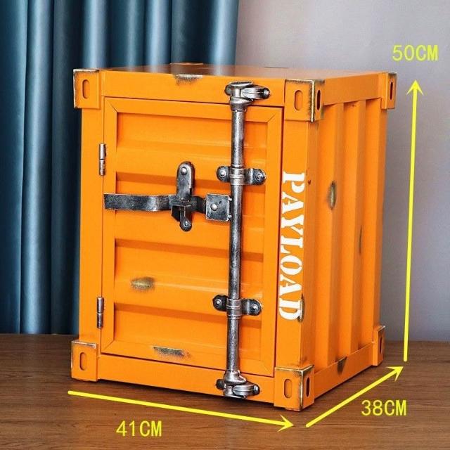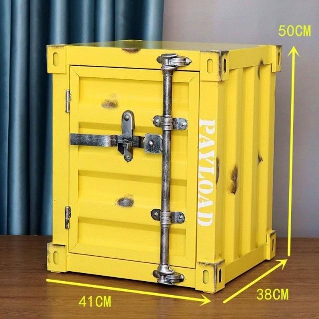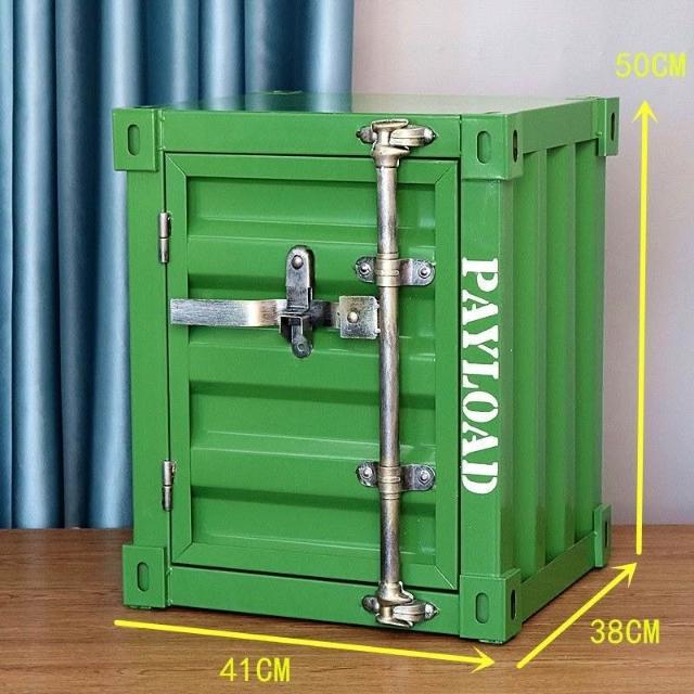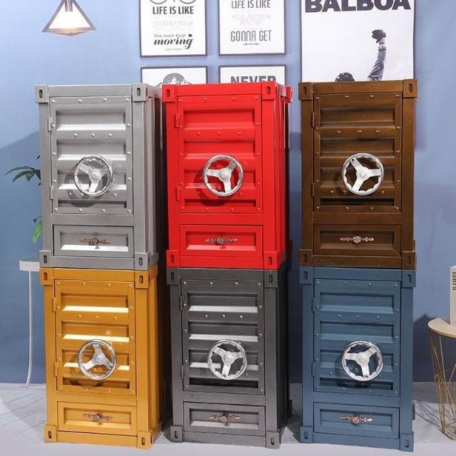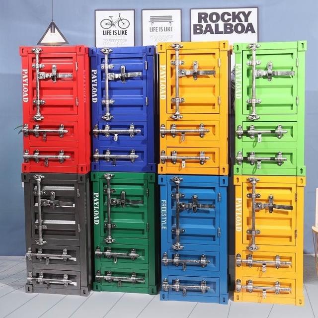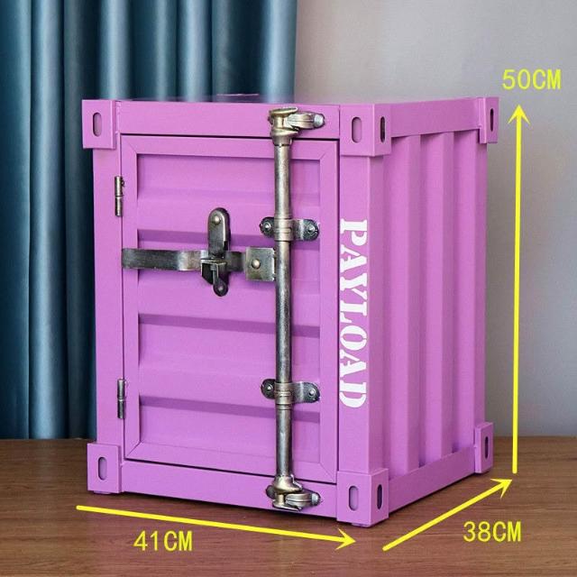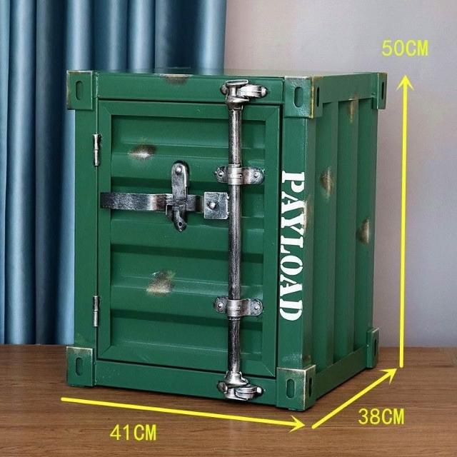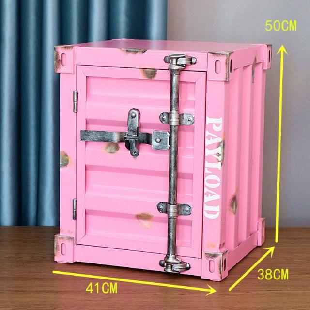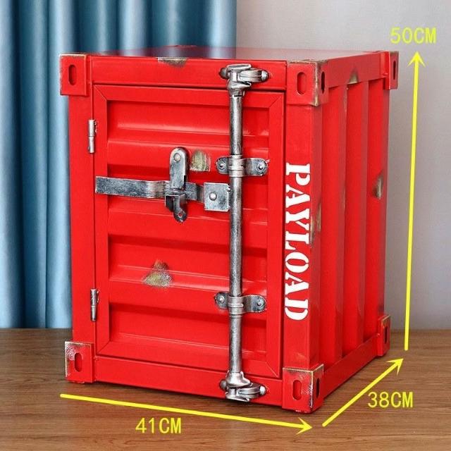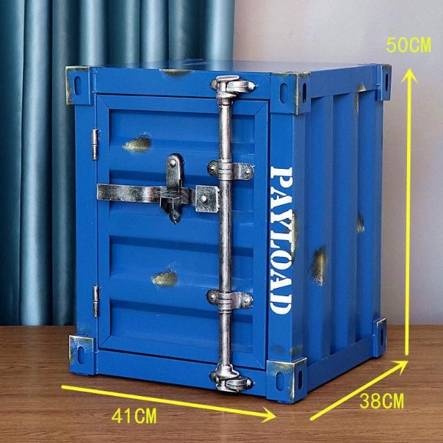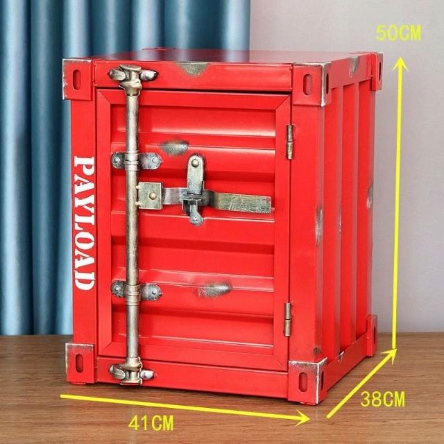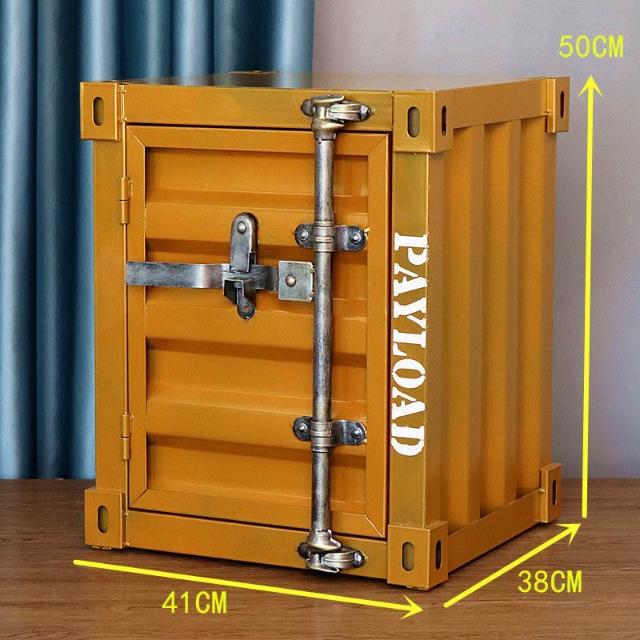 集裝箱櫃子 工業風儲物櫃 鐵藝床頭櫃 帶鎖創意擺件小櫃子 小型收納櫃 鐵皮櫃