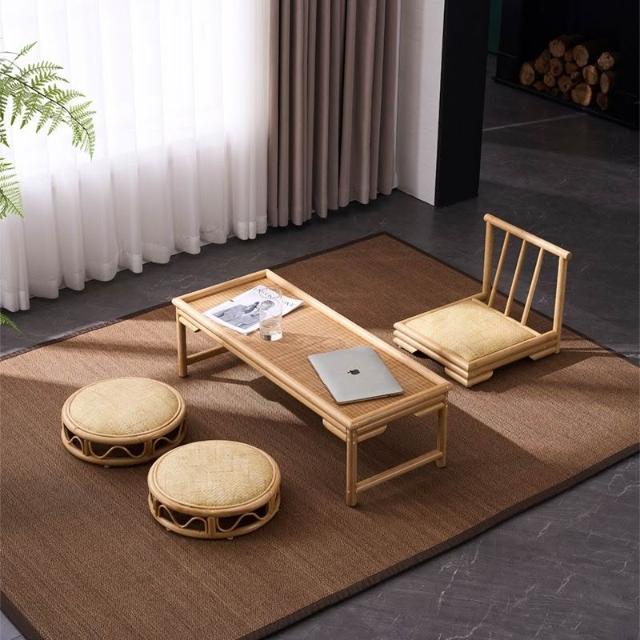 日式飄窗小茶幾榻榻米桌簡約禪意矮桌陽臺傢用小桌子民宿桌椅組閤