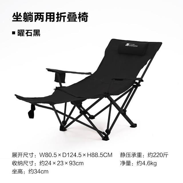 牧高笛樂享躺椅戶外露營可調節帶腳託折疊椅坐躺兩用靠背躺椅