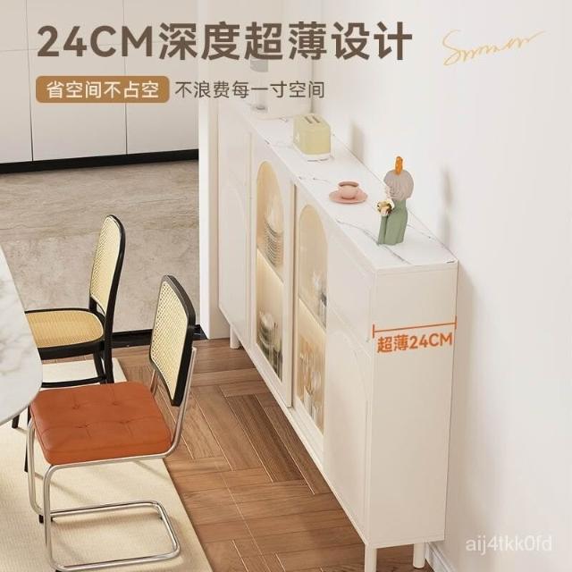 奶油風餐邊櫃一體靠墻客廳置物櫃邊櫃極窄櫃矮櫃墻邊櫃收納儲物櫃