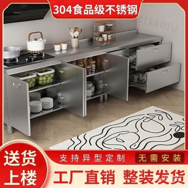 304整体加厚不锈钢橱柜免安装一体式厨房灶台柜家用小户型