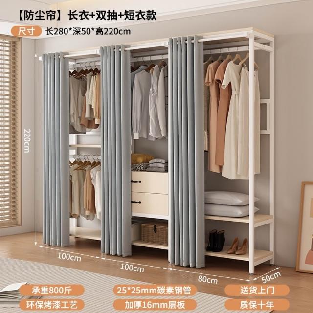 3MLE步入式金屬衣櫃傢用臥室衣帽間架子組裝自製簡易鋼架開放式衣