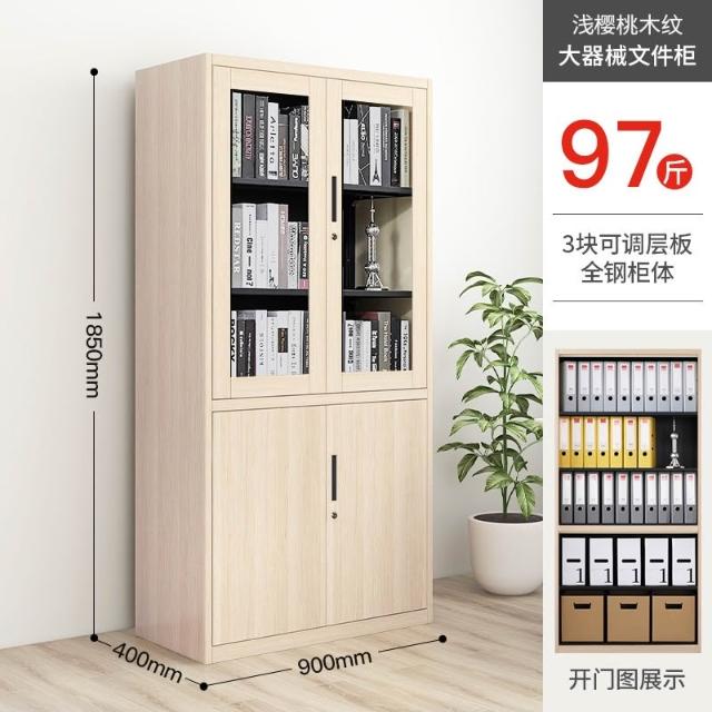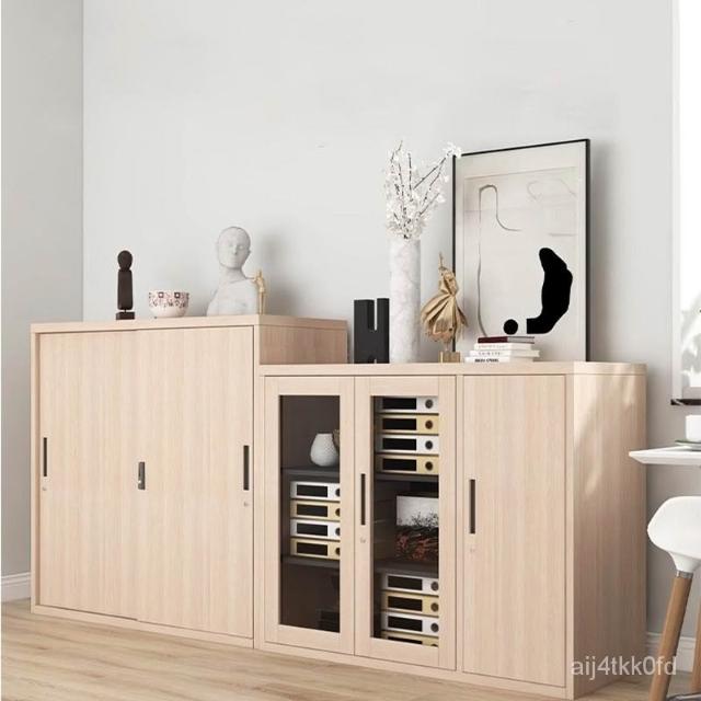 辦公室文件櫃 木紋鋼製鐵皮櫃 資料櫃 檔案櫃 書櫃 帶鎖玻璃展示櫃 矮櫃 儲物櫃子 落地置物櫃 儲物櫃 玄關櫃 收納櫃