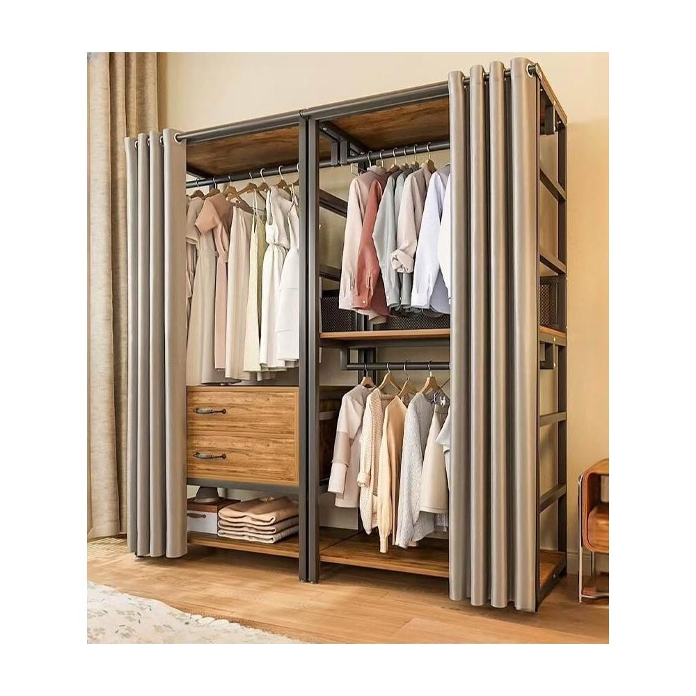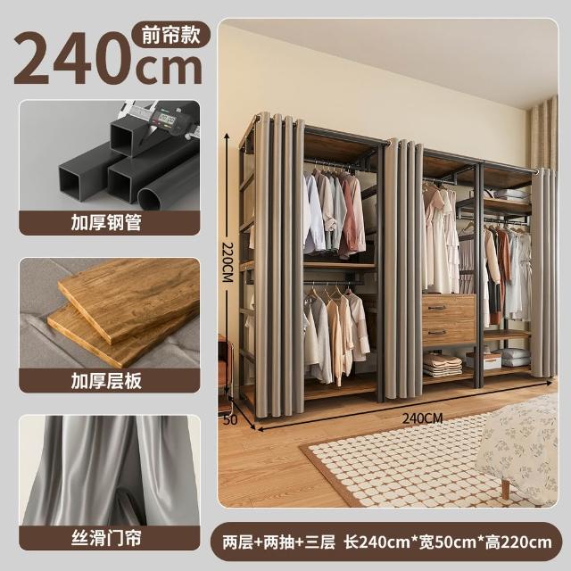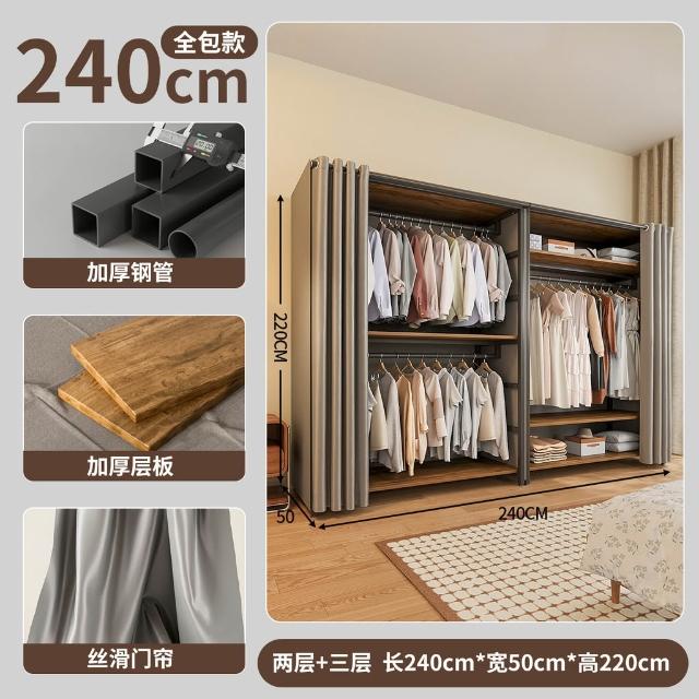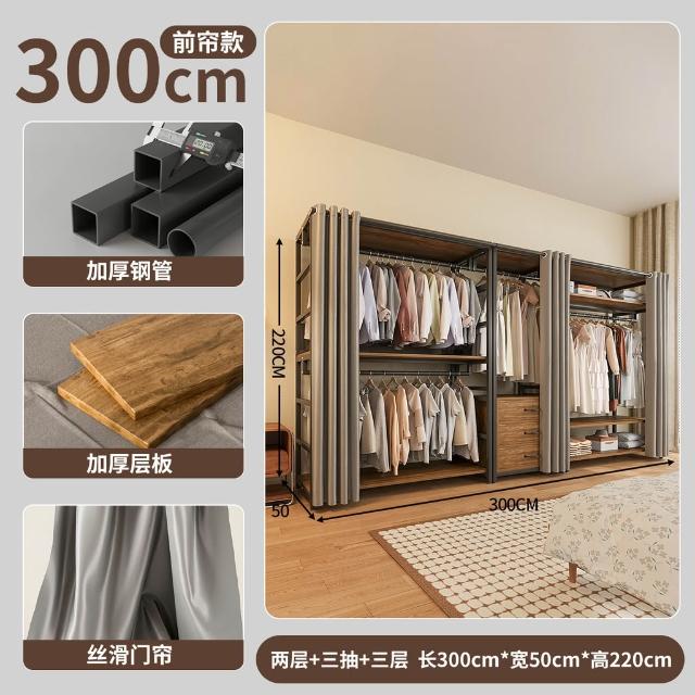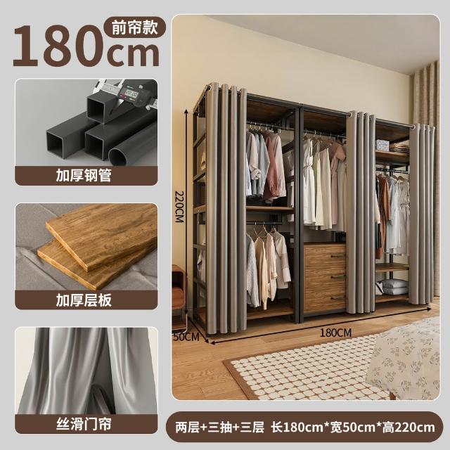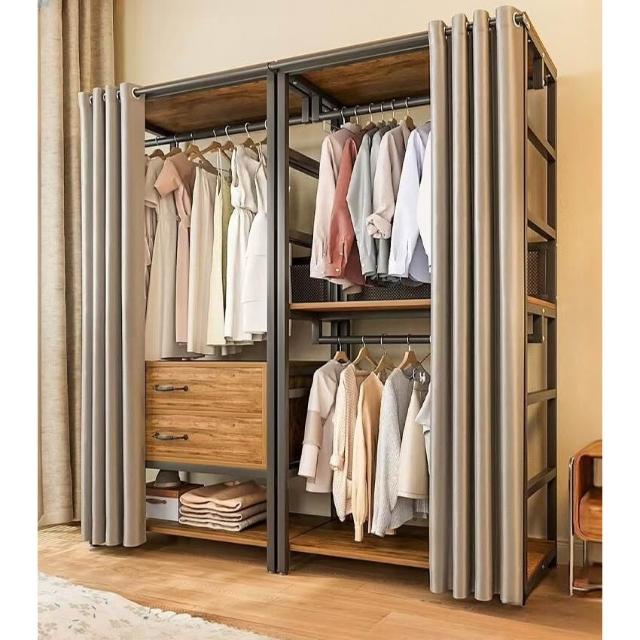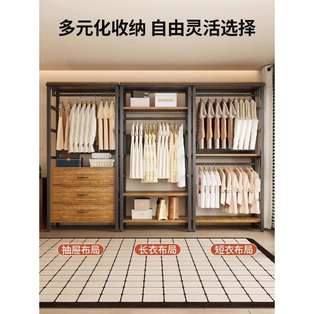 免運 开放式衣柜家用卧室简易组合小户型落地衣架出租房金属防尘衣帽架