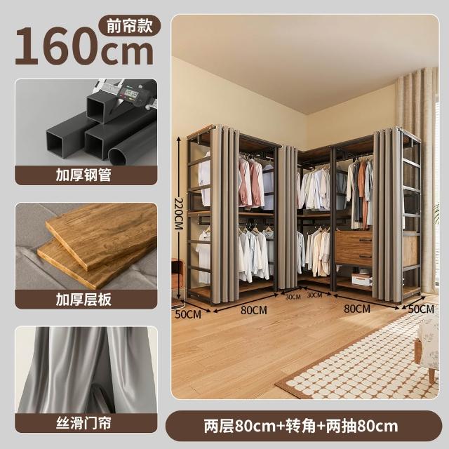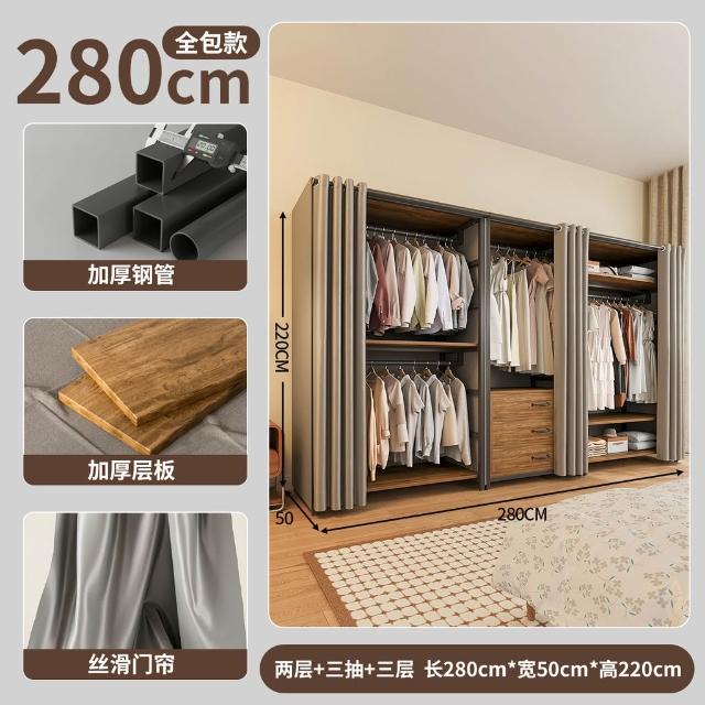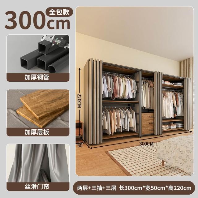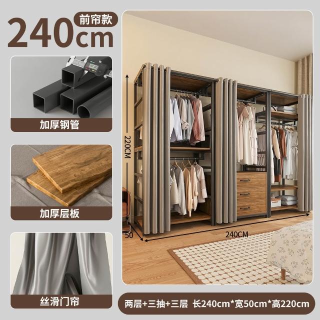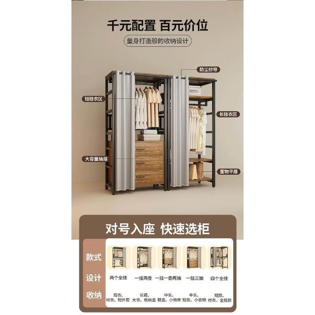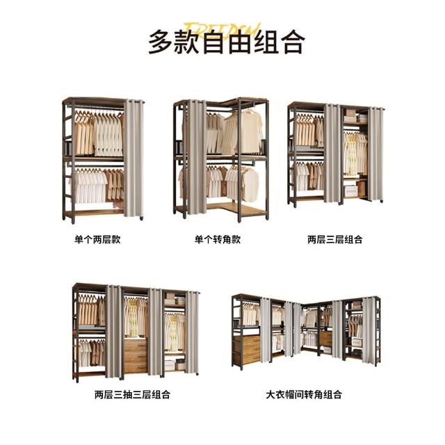免運 开放式衣柜家用卧室简易组合小户型落地衣架出租房金属防尘衣帽架